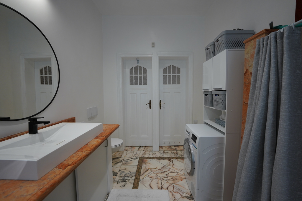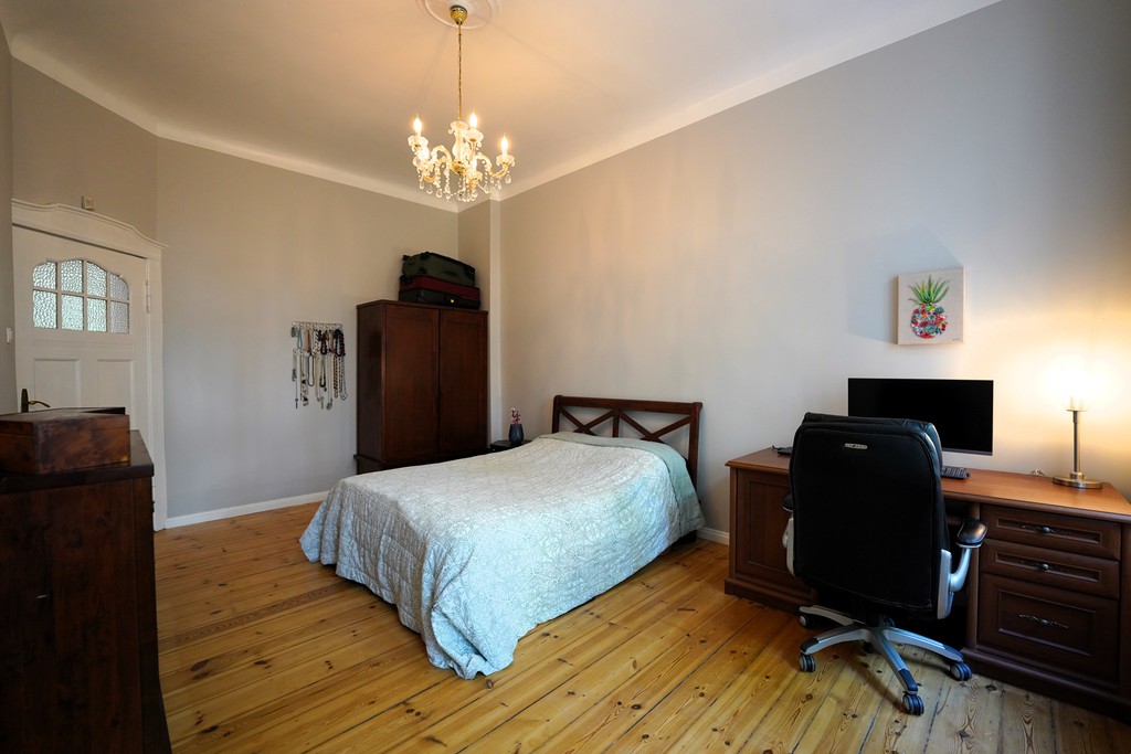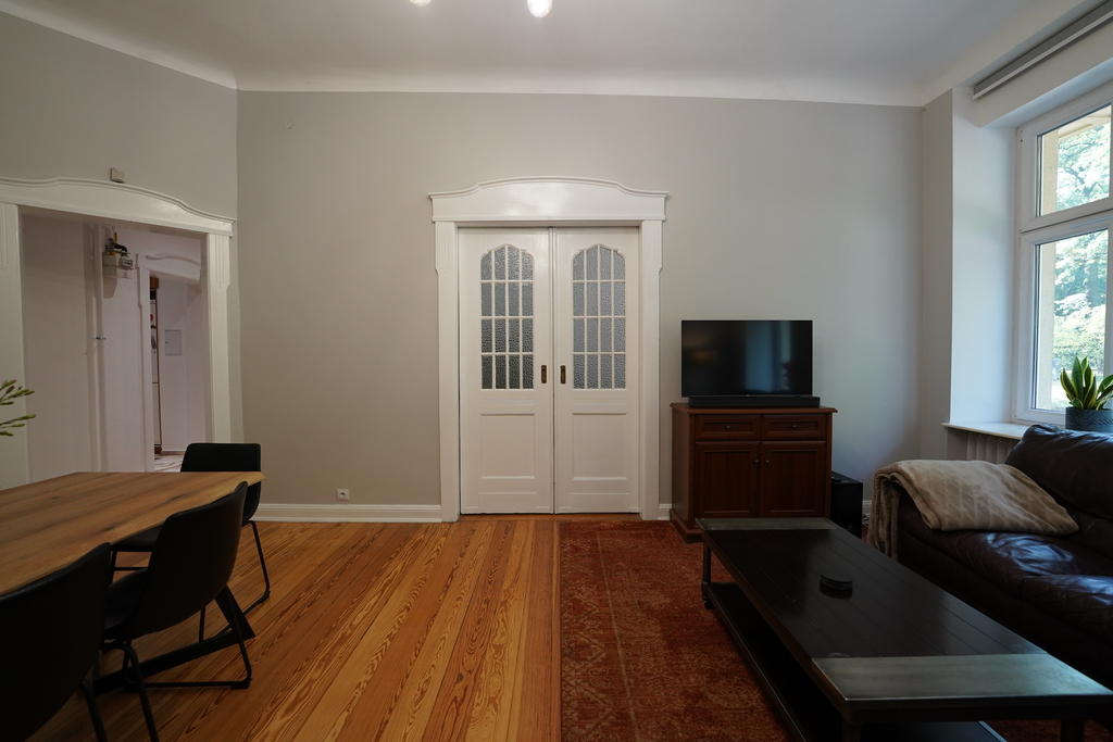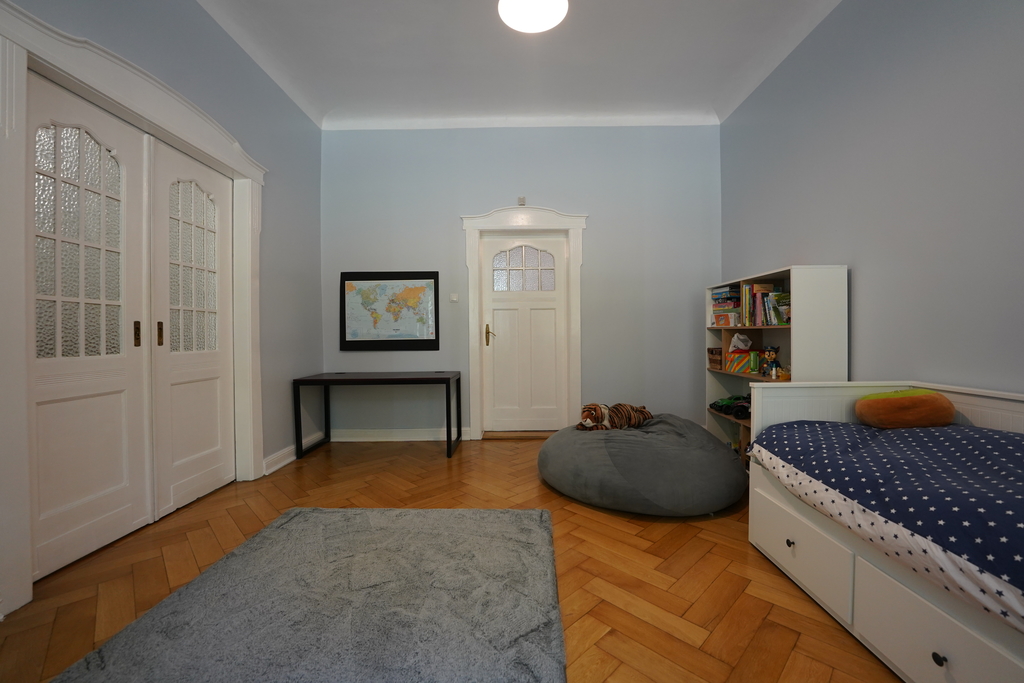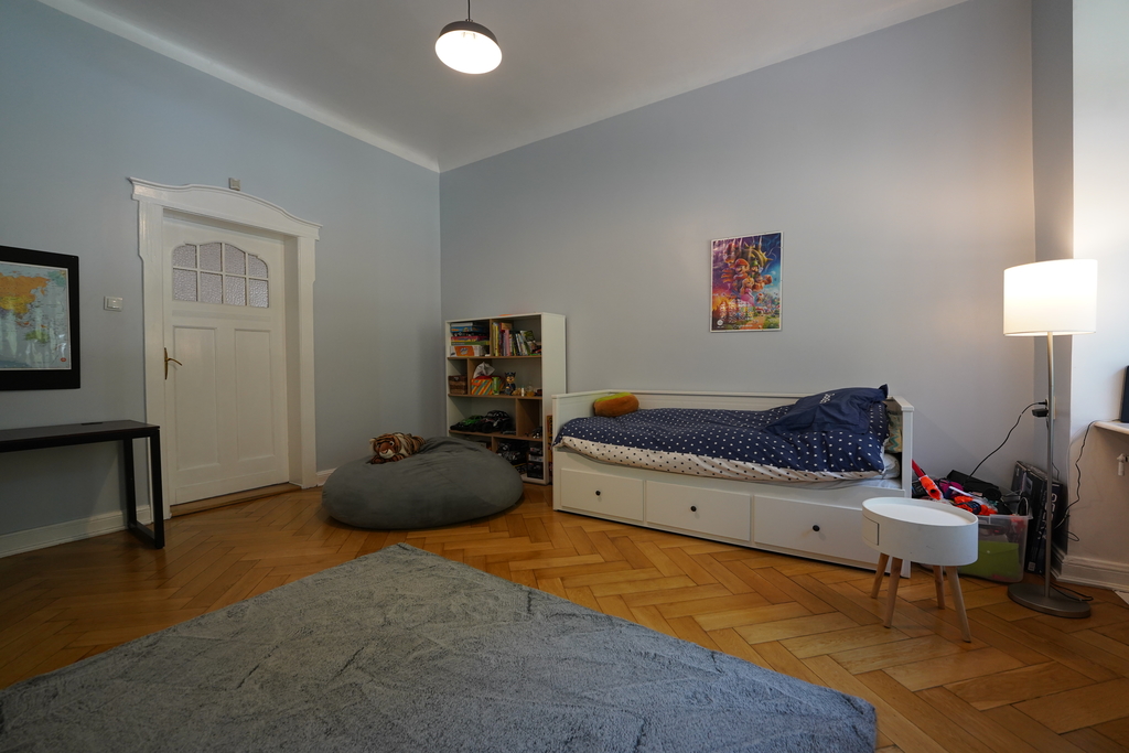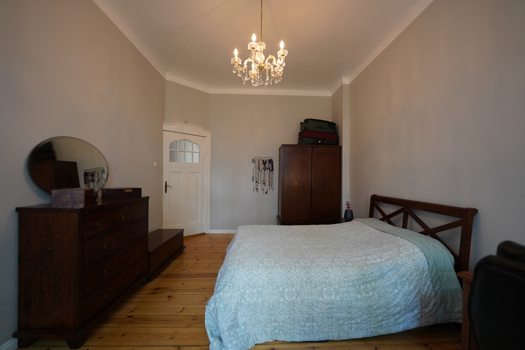 Na podłogach oryginalna, drewniana deska podłogowa i parkiet.