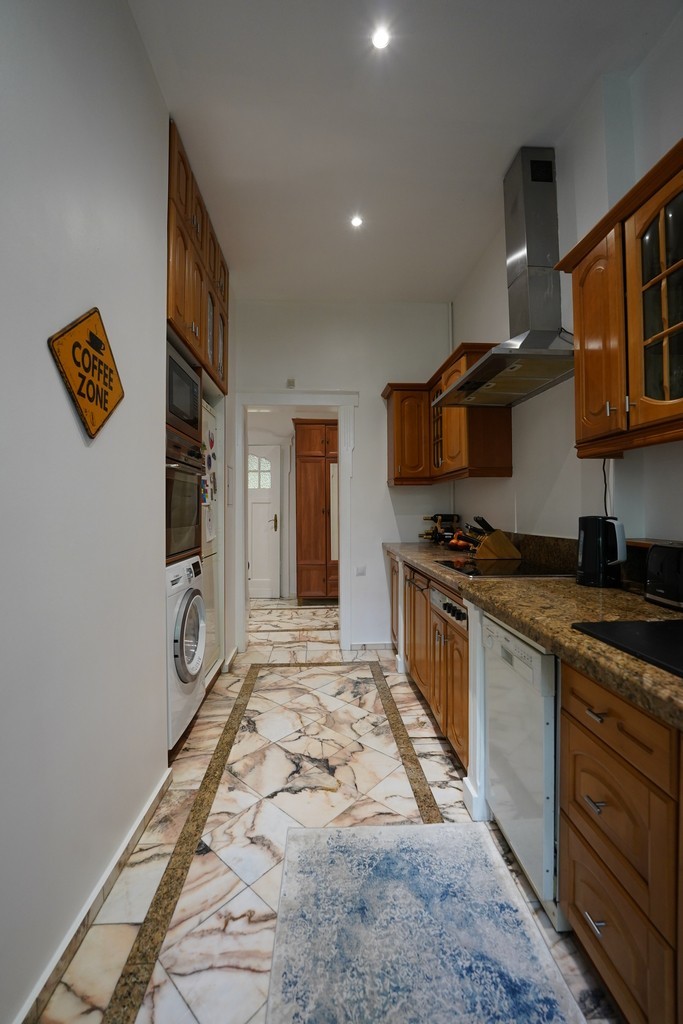 W kuchni zabudowa stała wraz ze sprzętem AGD.