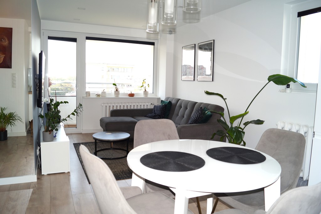 Do sprzedania piękne, widne mieszkanie po kapitalnym remoncie. Mieszkanie znajduje się na 10 piętrze co jest dużym plusem ze względu na  zachwycający widok. Pierwotnie mieszkanie było 4 pokojowe lecz właściciel chcąc uzyskać przestrzeń przebudował całkowicie mieszkanie . Na powierzchnie 56,6m2 składa się obecnie: Korytarz (z dużym lustrem na wejściu co powiększa przestrzeń) z którego jest przejście do salonu, jadalni oraz kuchni ( aneks kuchenny), Bardzo przytulna sypialnia z zabudowaną szafą i dużym łóżkiem sypialnianym, mniejszy pokój- obecnie jako biuro oraz mała garderoba. Osobno toaleta i wc.  Kuchnia w jasnej zabudowie wraz ze sprzętem pozostaje w cenie mieszkania jak również pozostałe meble w mieszkaniu. Łazienka jak i wc w nowocześniej glazurze i terakocie.  . W bloku znajdują się dwie nowe windy.  Blok jest ocieplony W okolicy znajduje się przedszkole, szkoła, supermarkety, apteki oraz przychodnia z grupą luxmed.  Dojazd do bloku nowo zrobioną drogą asfaltową. Istnieje również możliwość przejęcia najmu garażu. Blok usytuowany jest z dala od głównej drogi z linią tramwajową, dzięki czemu jest cicho i zarazem zielono dookoła.  Polecam i zapraszam na prezentacje gryz zdjęcia nie oddają uroku tego pięknego mieszkania.