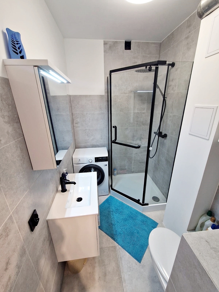 Mieszkanie o powierzchni 39m2 składa się z 2 rozkładowych pokoi, w tym salon z aneksem kuchennym oraz wyjściem na przestronny balkon, łazienki z kabiną prysznicową i korytarza. Klatka schodowa czysta. Mieszkanie po kapitalnym remoncie ( czeka na pierwszego najemcę).