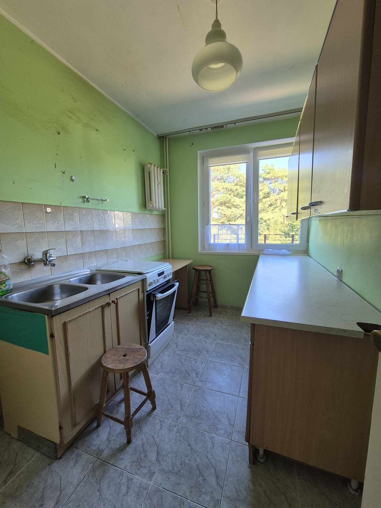 Ściany w pokojach malowane, na podłogach w pokojach pcv. W przedpokoju na podłodze terakota. Miejsce na dużą szafę. Kuchnia widna z dużym oknem . Łazienka i wc w jasnej glazurze i terkocie starszego typu.