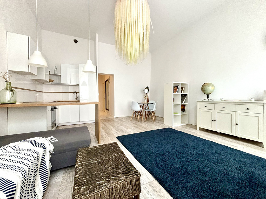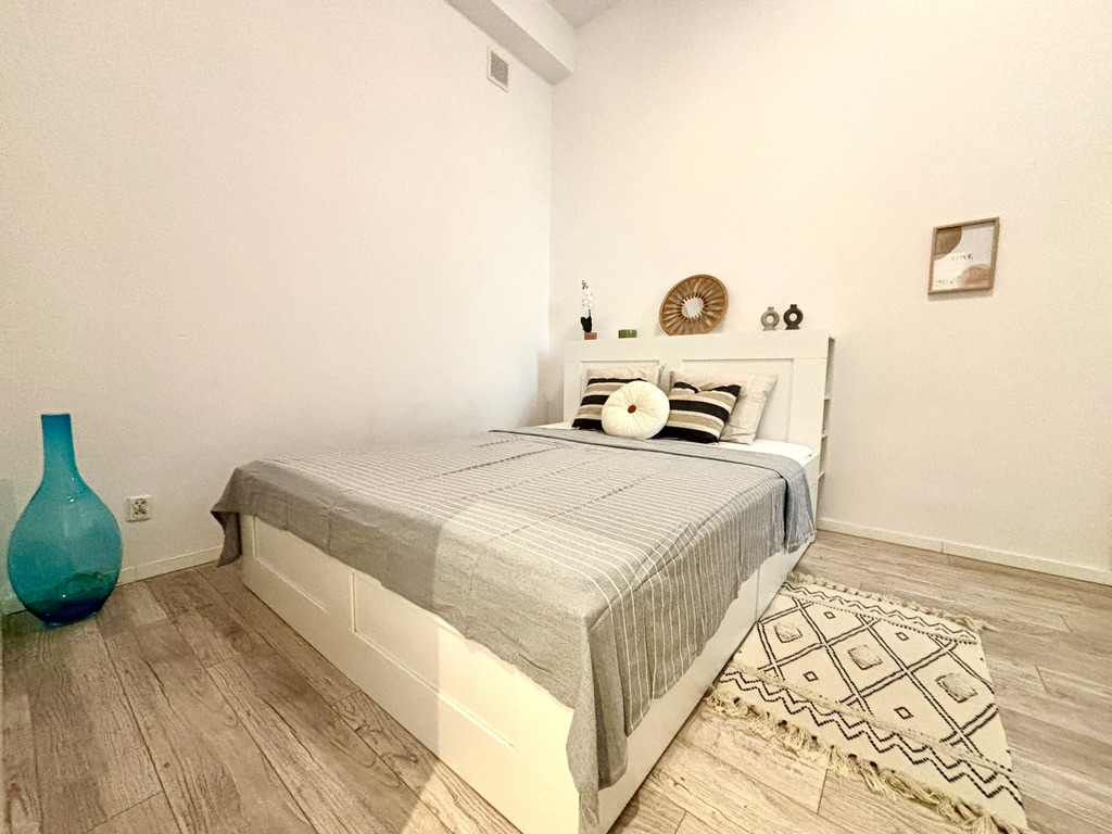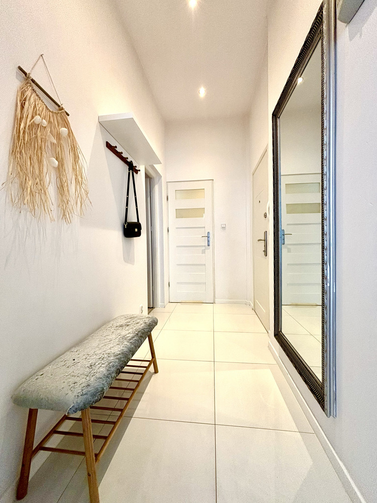 Mieszkanie jest rozkładowe i bardzo słoneczne ze względu na południową ekspozycję dużych okien w salonie. Posiada też klimatyzator na upalne dni.