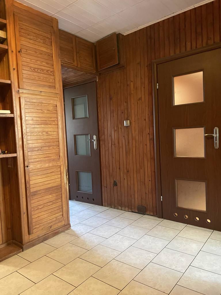 W pokojach na podłogach panele, w kuchni, WC, łazience i kuchni terakota.