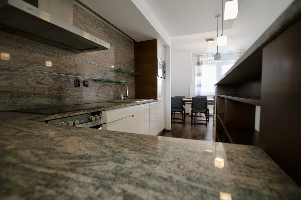 Do dyspozycji mieszkańców jest balkon, a dodatkowe wyposażenie obejmuje m.in. zmywarkę, lodówkę, piekarnik, kuchenkę oraz pralkę.
