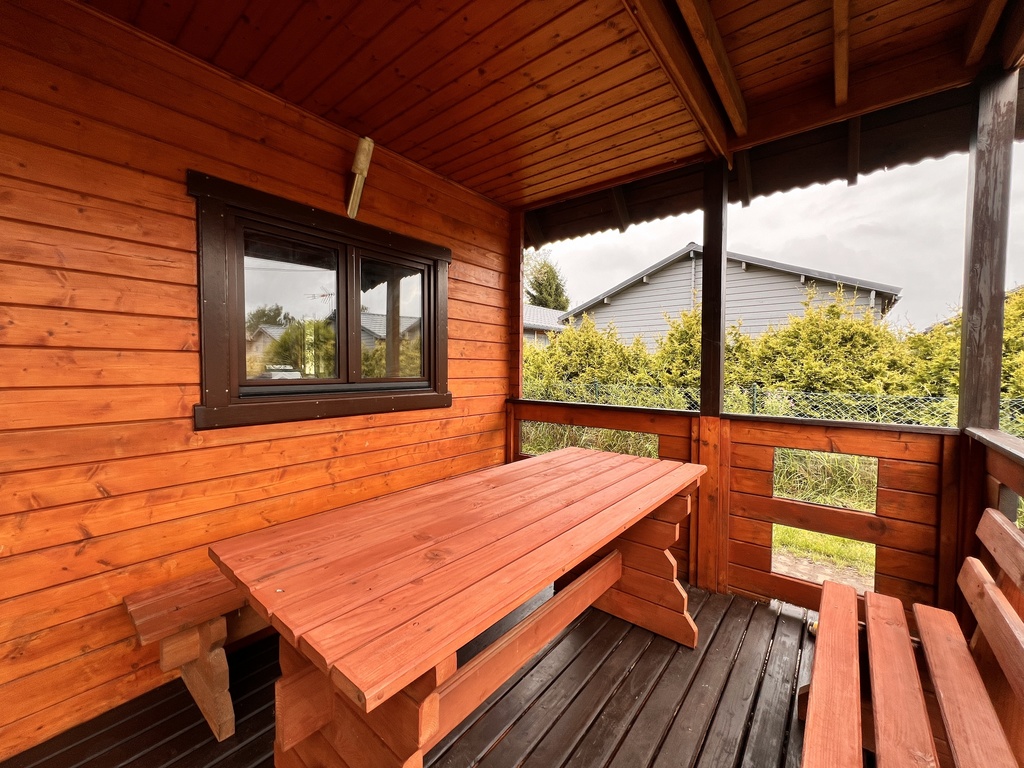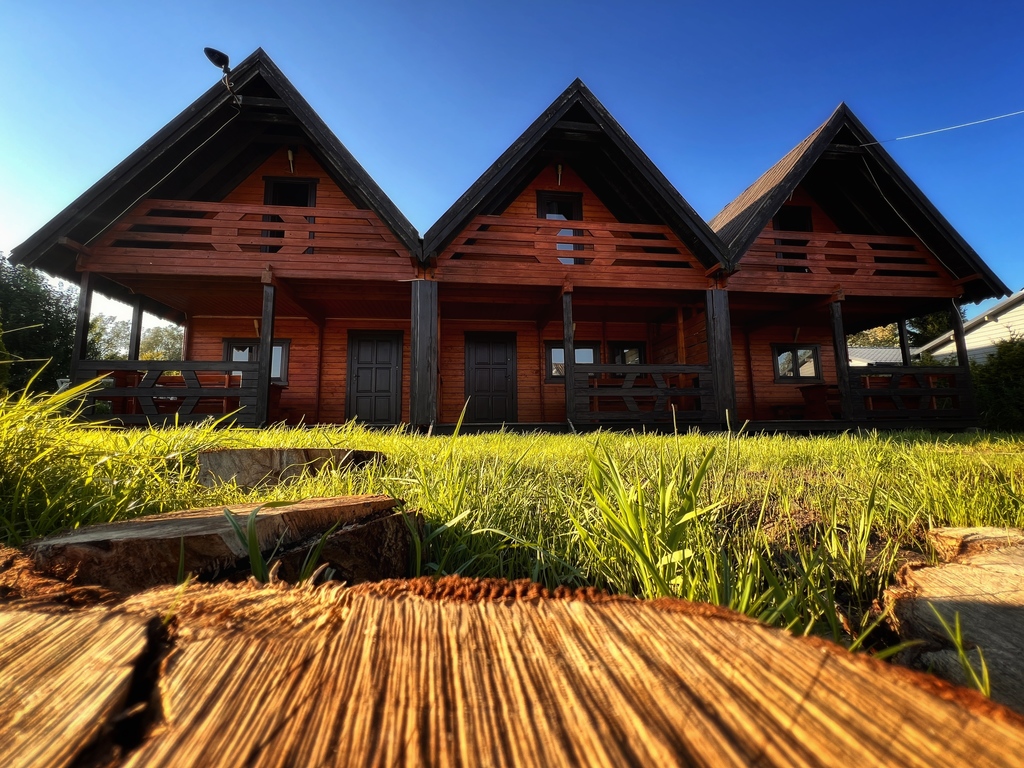 - każdy domek posiada swój własny taras wyłożony deskami oraz jest zadaszony ponieważ jest nad nim balkon.