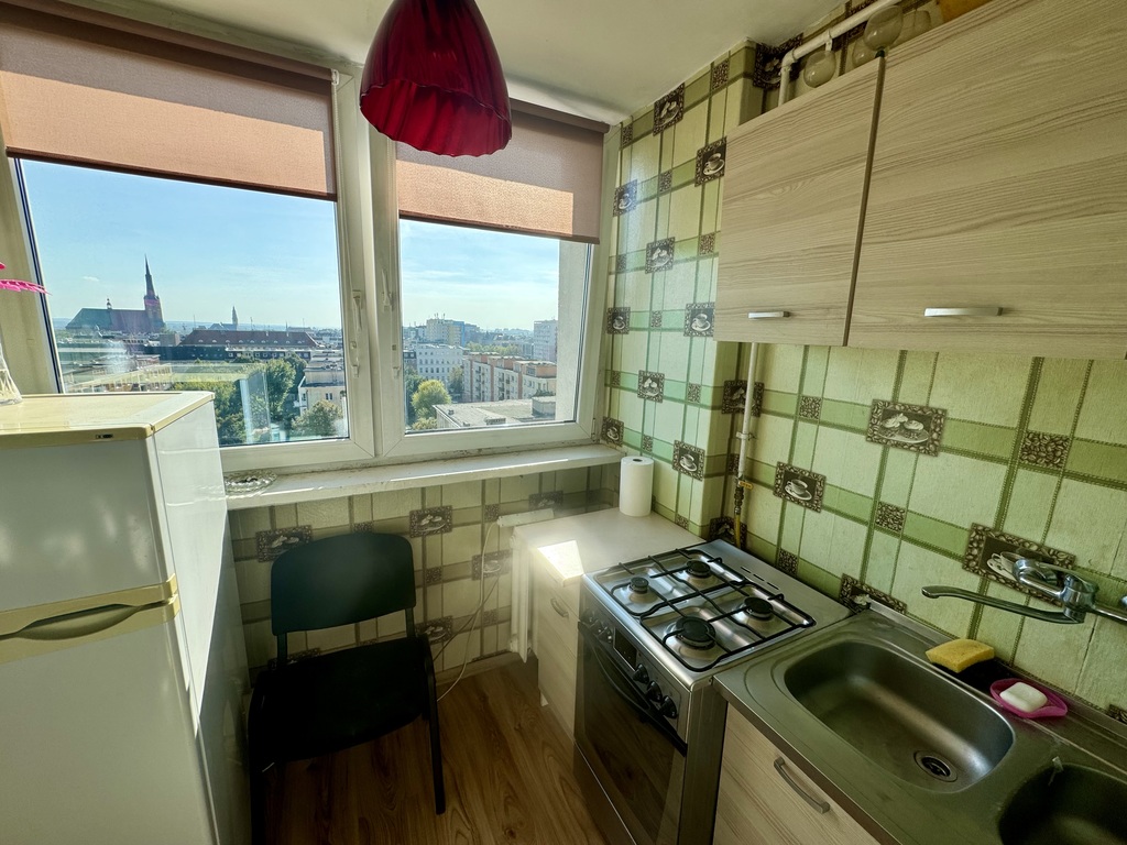 Na wynajem słoneczna kawalerka o powierzchni 28,9 m2 położona na 10 piętrze wysokiego budynku przy Placu Rodła.