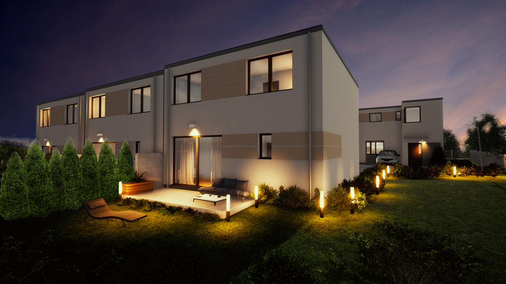 Nowa inwestycja czterech domów jednorodzinnych w zabudowie szeregowej, w pożądanej lokalizacji w Bezrzeczu. Działki od 127 do 202 mkw.
