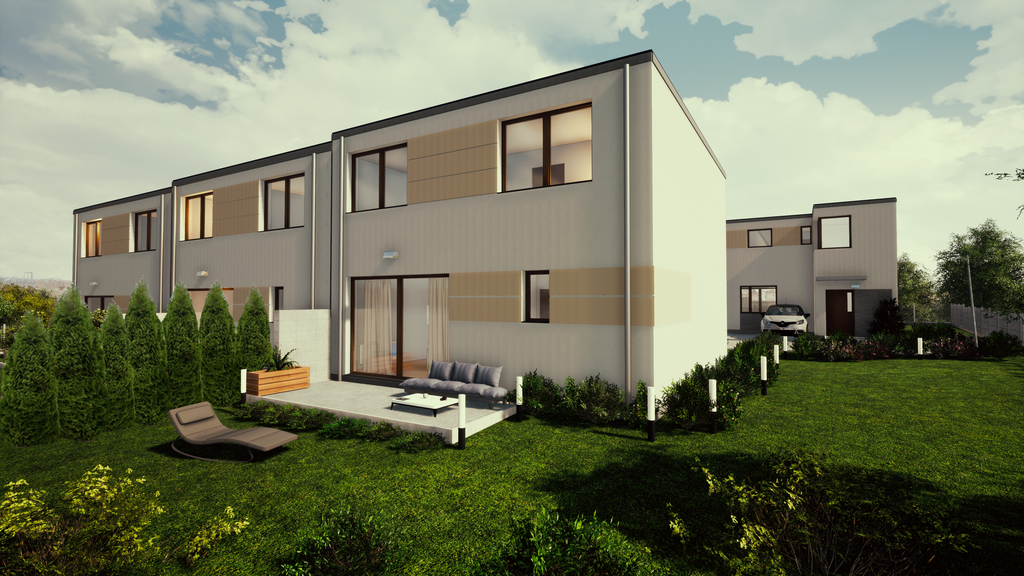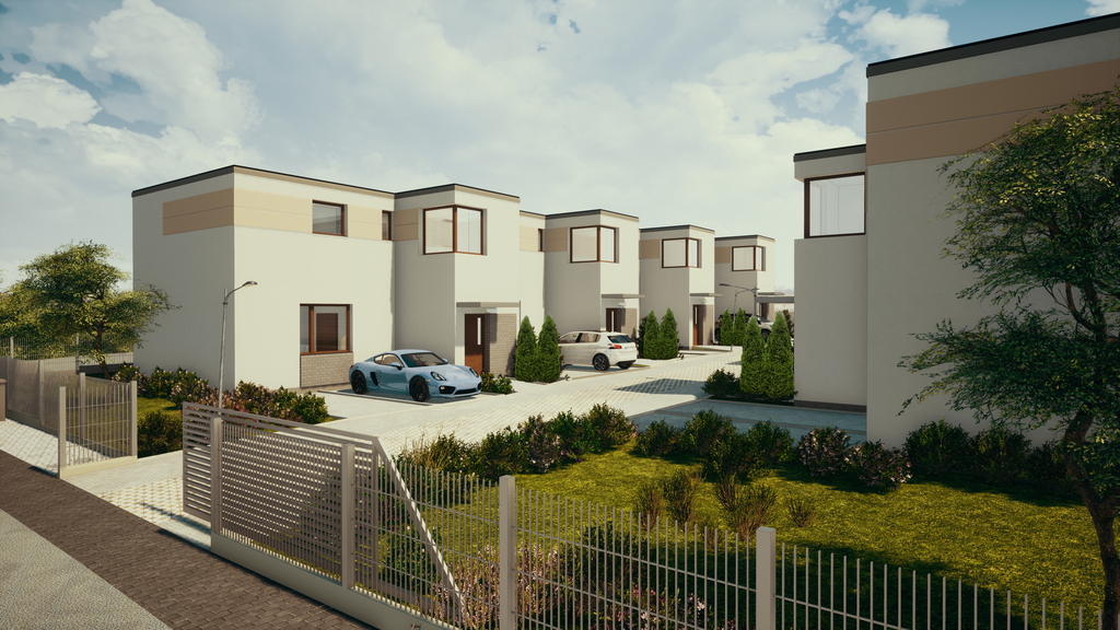 Na terenie nieruchomości każdego z domów są 2 miejsca parkingowe i ogródki o powierzchni od 68,40 mkw.