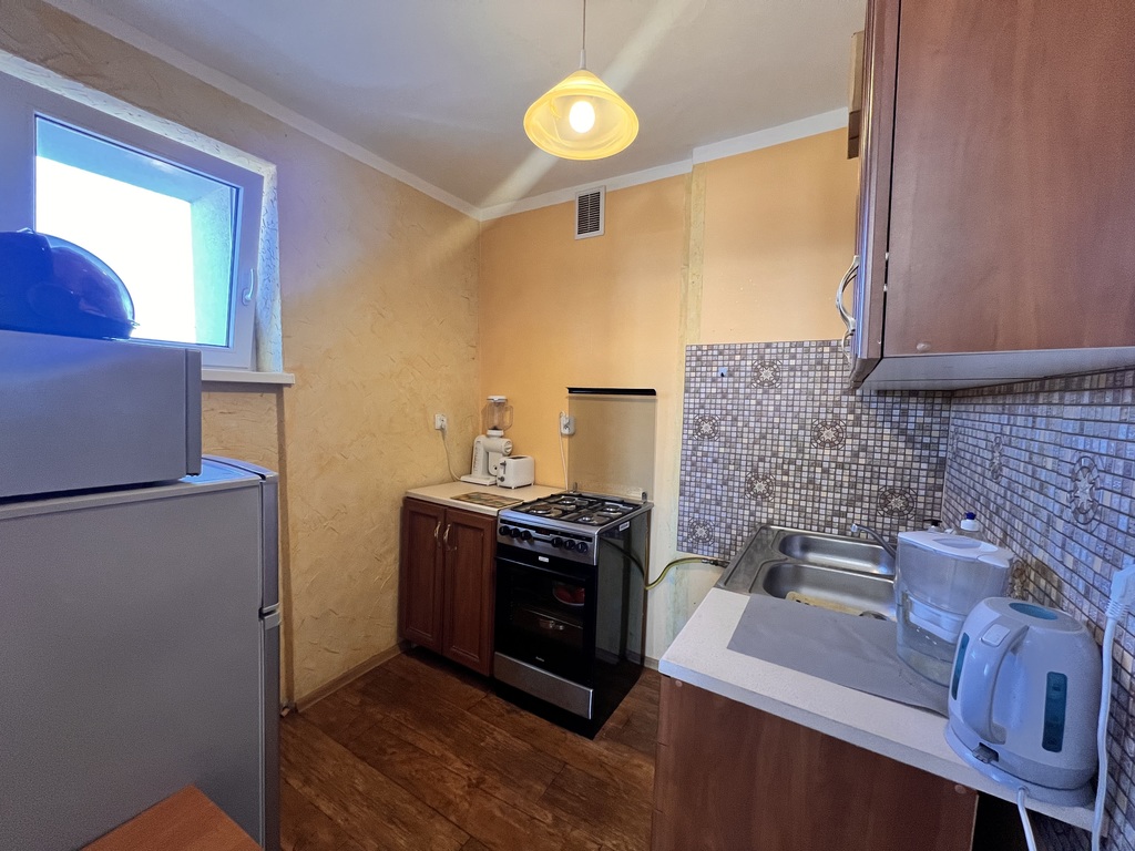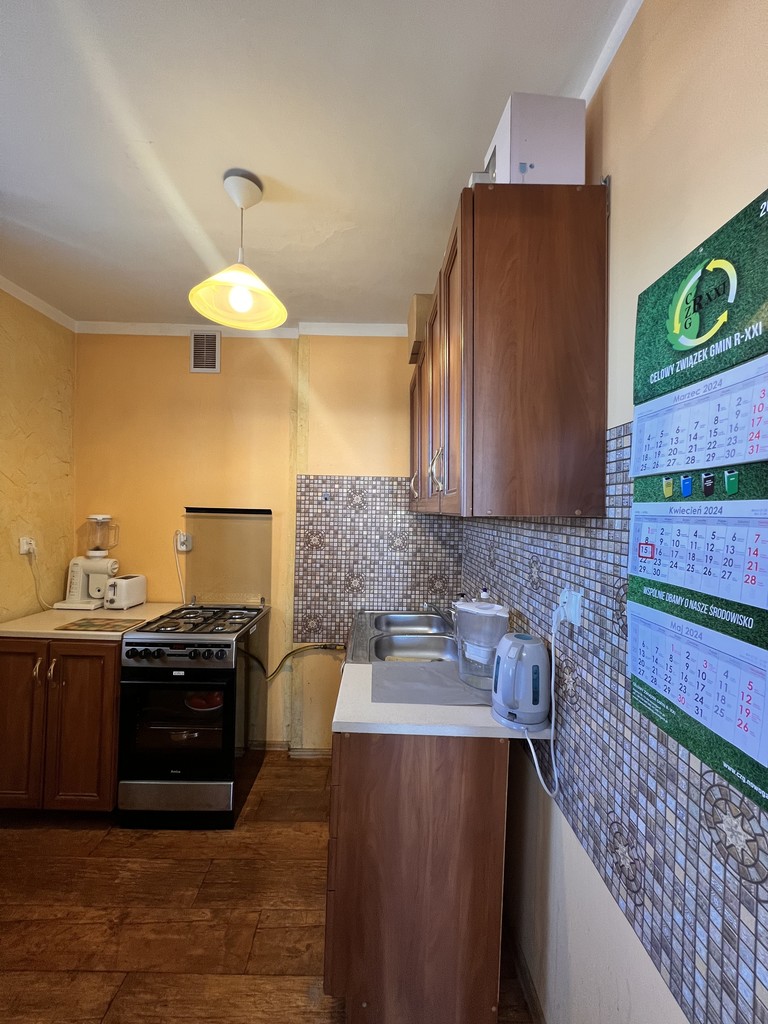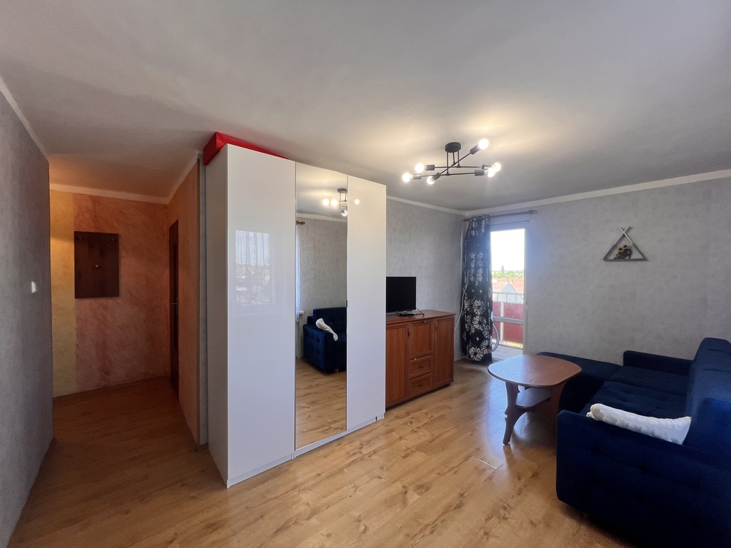 Mieszkanie składa się z salonu z bezpośrednim wyjściem na balkon, sypialni, kuchni z oknem, łazienki z kabiną prysznicową wraz z WC oraz z przedpokoju. Do mieszkania przynależy piwnica o powierzchni 1,8m 2 . Budynek został ocieplony w 2014 roku, a klatka schodowa została wyremontowana w 2021r. Wymieniono instalację elektryczną i hydrauliczną.