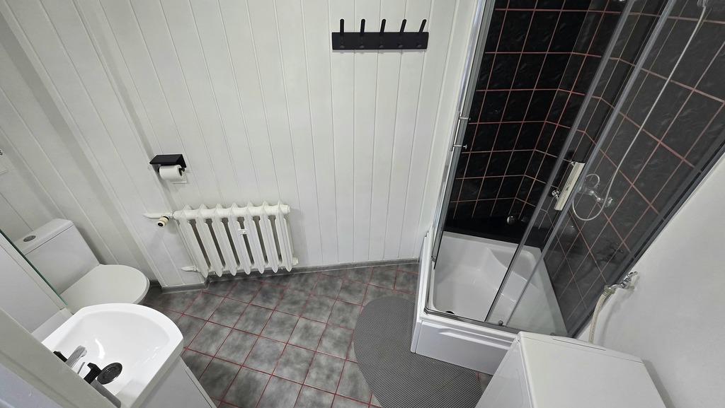 - dużej łazienki w kabiną prysznicową, pralką i wc
