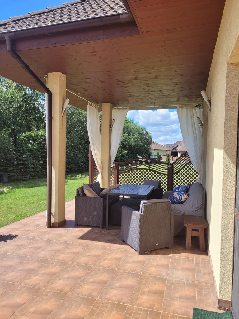Dom posiada, od strony ogrodu taras o powierzchni 80 m2.