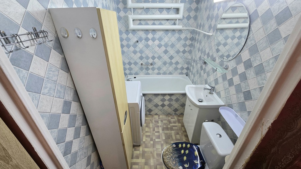 - łazienka z wanną i pralką