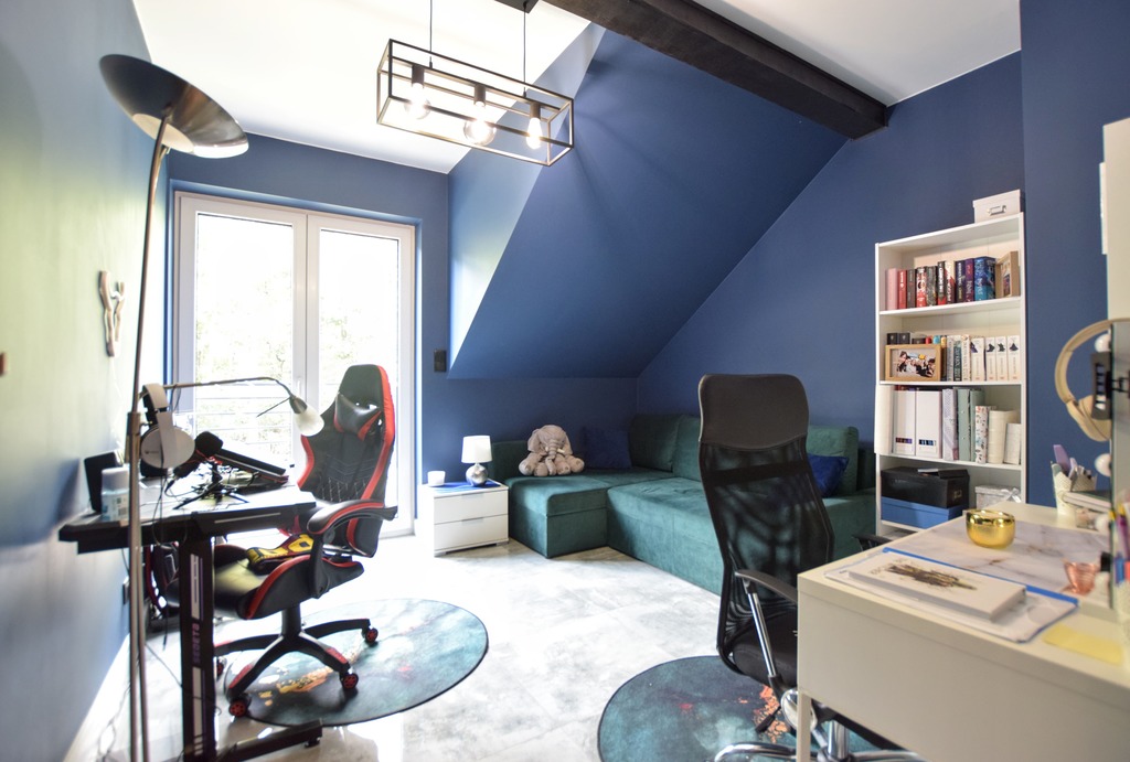 Dom z 2021r.b. z garażem oraz poddaszem z dodatkową powierzchnią do przechowywania.