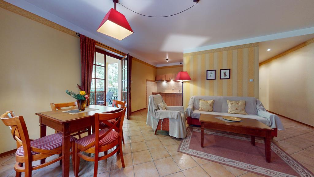Każdy lokal składa się z pokoju dziennego z aneksem kuchennym niemieckiej firmy Wellmann, sypialni oraz łazienki.