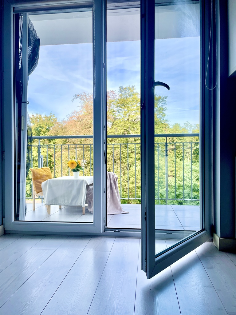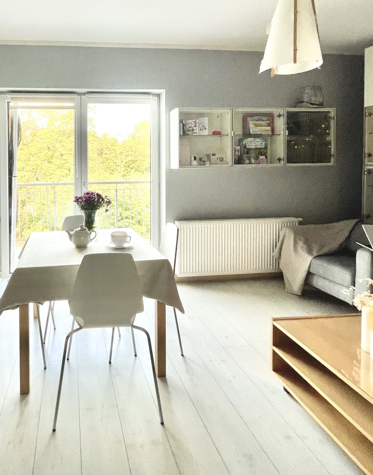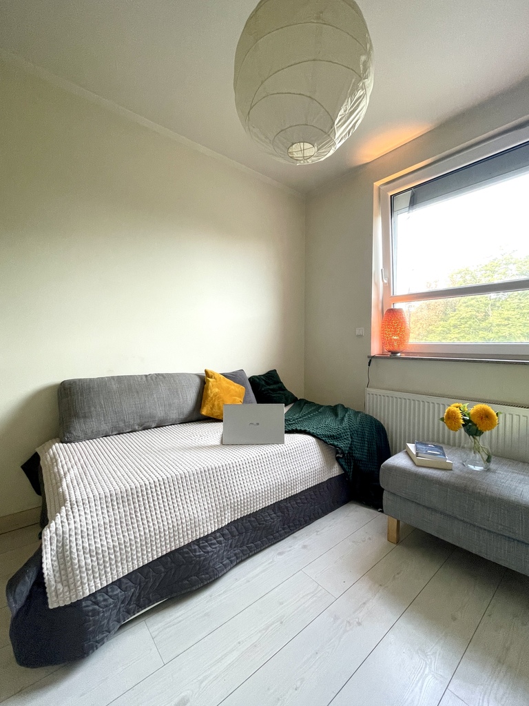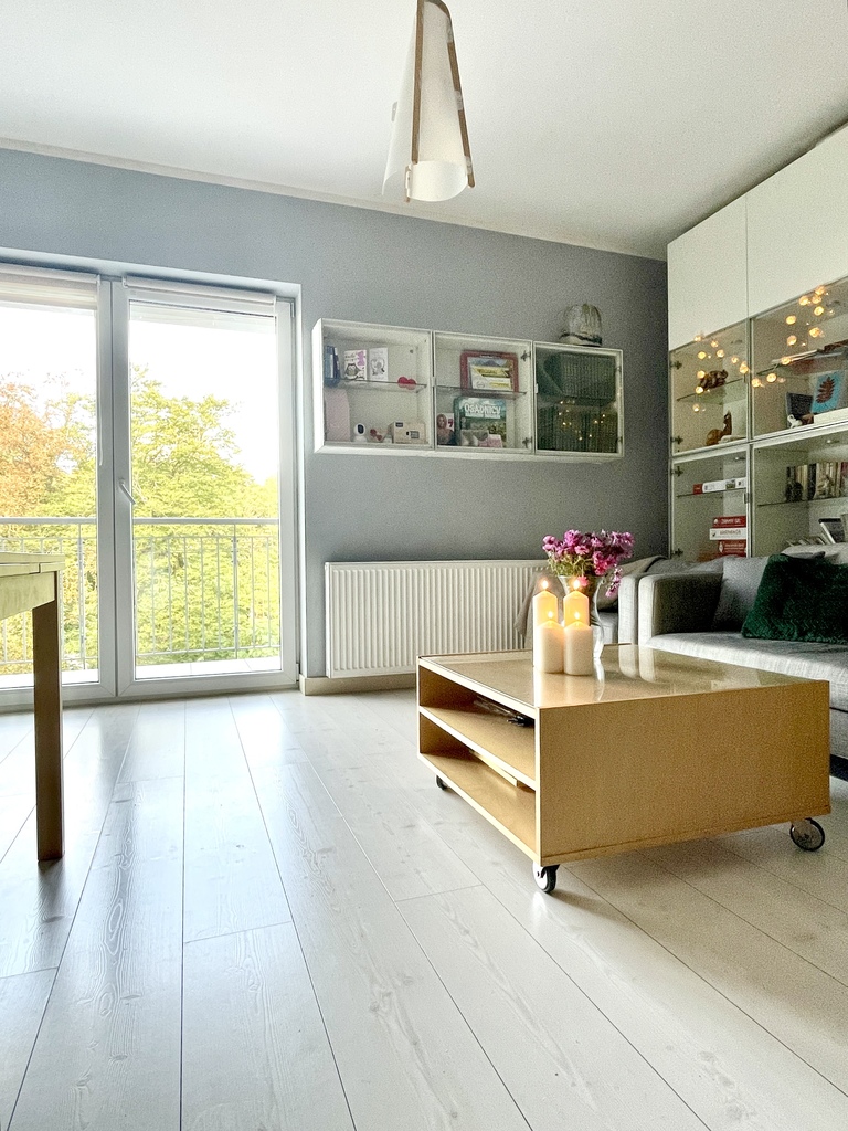 Mieszkanie jest bardzo jasne, z pięknym widokiem na zieleń,