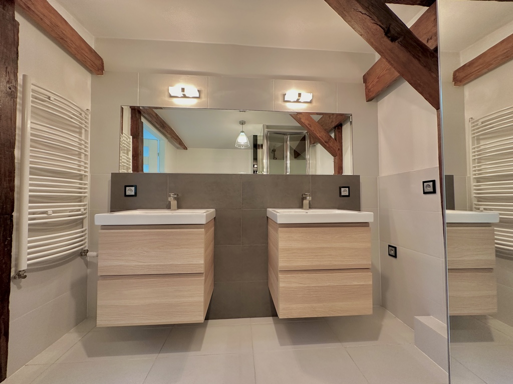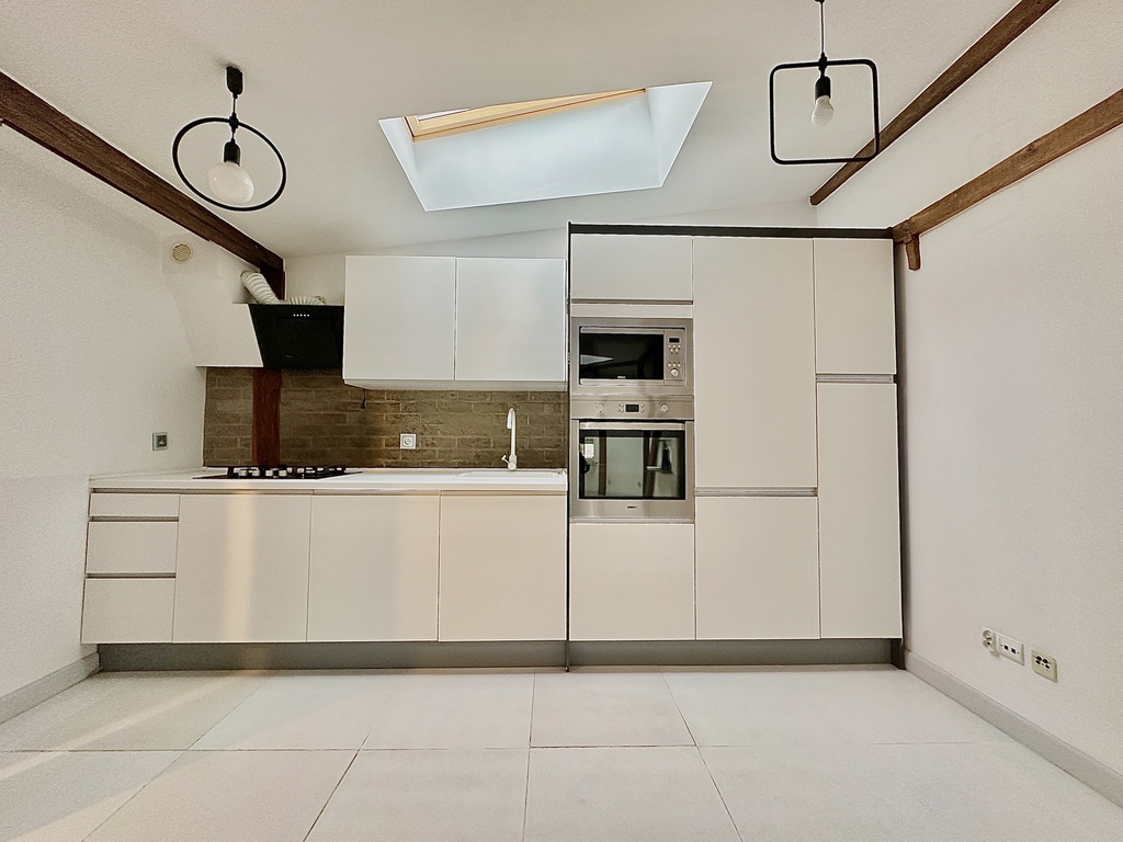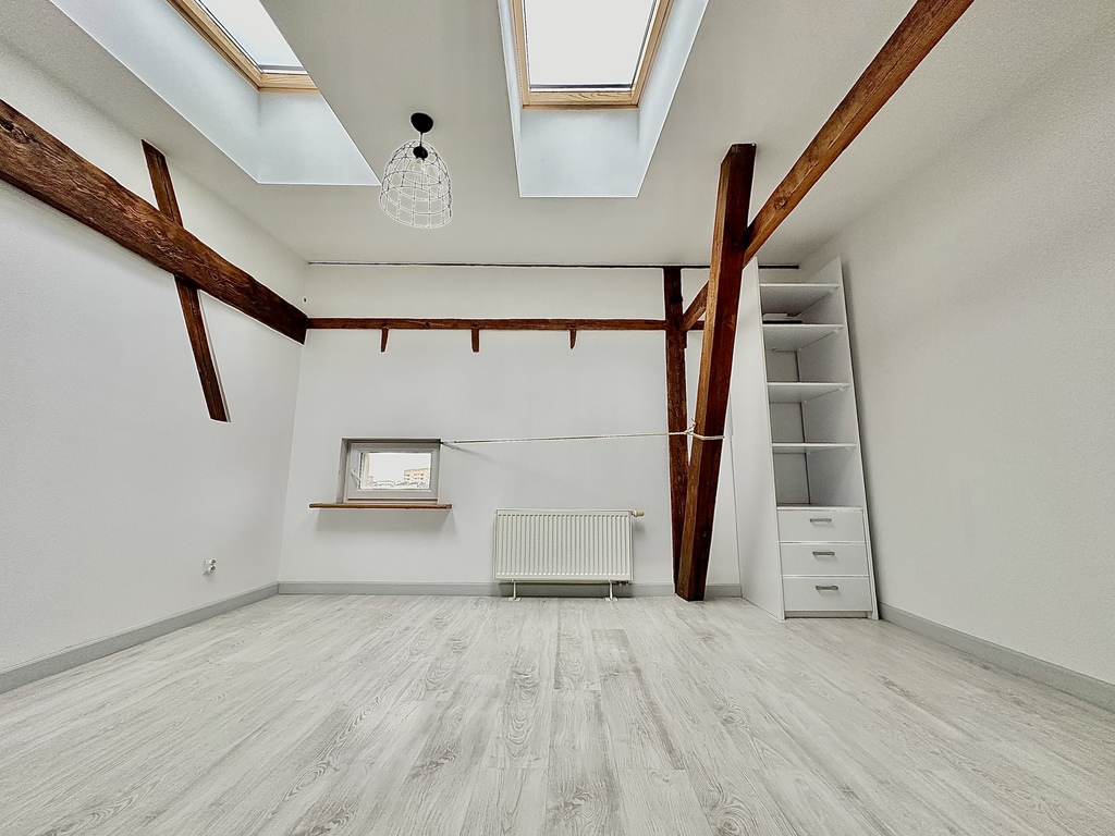 Mieszkanie zostało gustownie urządzone – na ścianach gładzie, na podłogach panele, a w oknach znajdują się zarówno połaciowe, jak i PCV. Wnętrze uzupełniają oryginalne, odrestaurowane drewniane belki, które nadają wyjątkowego charakteru. Lokal znajduje się na poddaszu kamienicy z odnowioną elewacją i świeżo wyremontowaną klatką schodową.