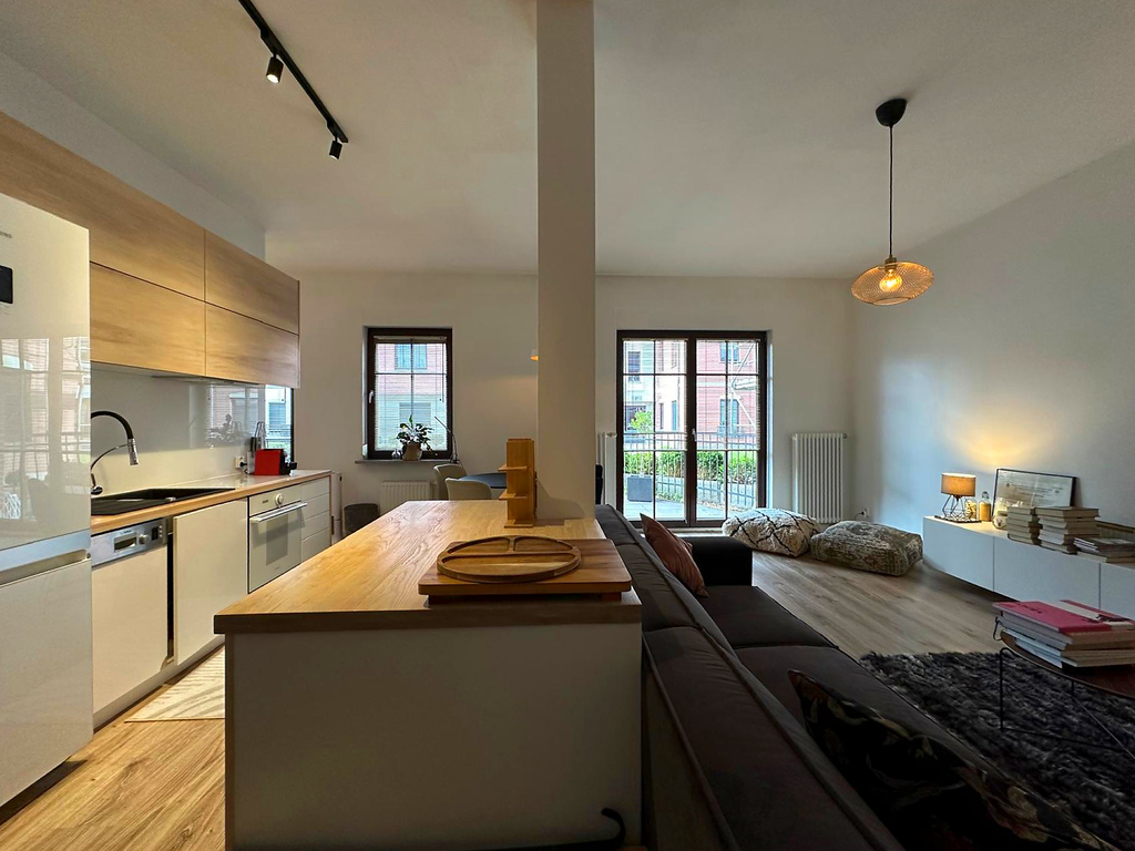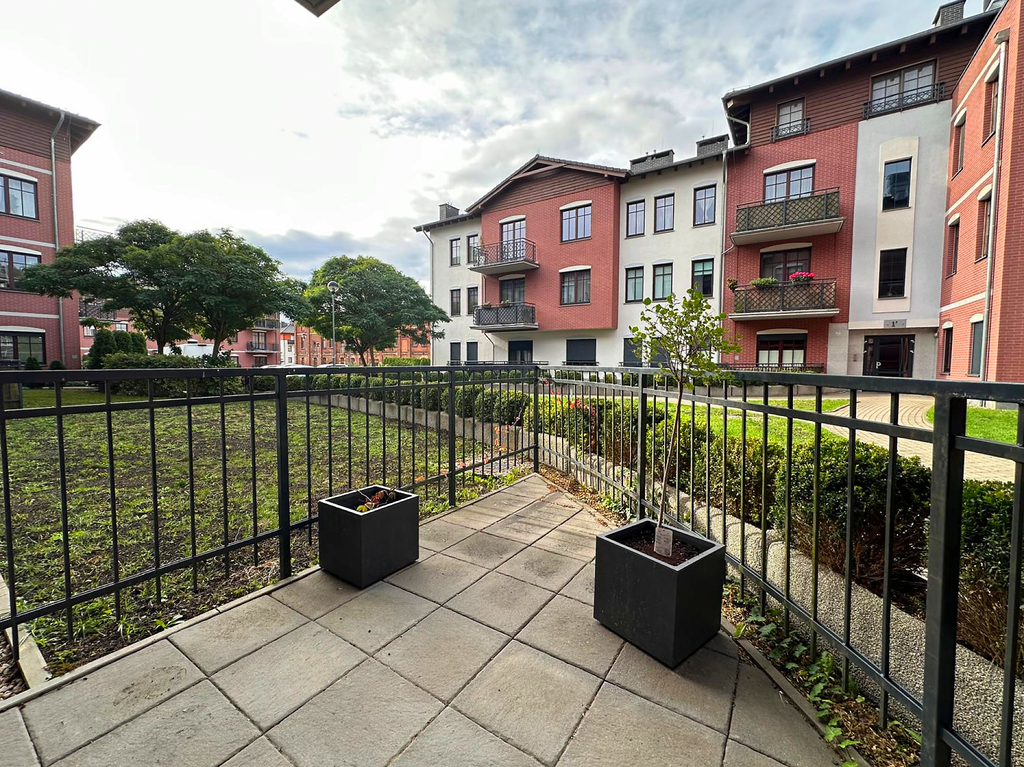 W ofercie sprzedaży gustownie zaaranżowane 2 pokojowe mieszkanie w stylu studio z ogródkiem, zlokalizowane na presiżowym osiedlu Garden House na Warszewie.