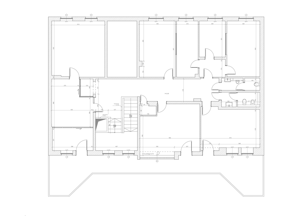 W większości pomieszczeń znajdują ujęcia wody i kanalizacji (aktualnie zaślepione) co jest wyjątkowo przydatne przy niektórych działalnościach. Trzy pomieszczenia posiadają wyjścia na wspólny taras. Okna wszystkie PCV.