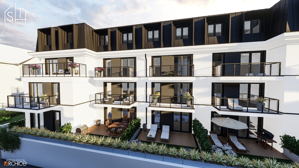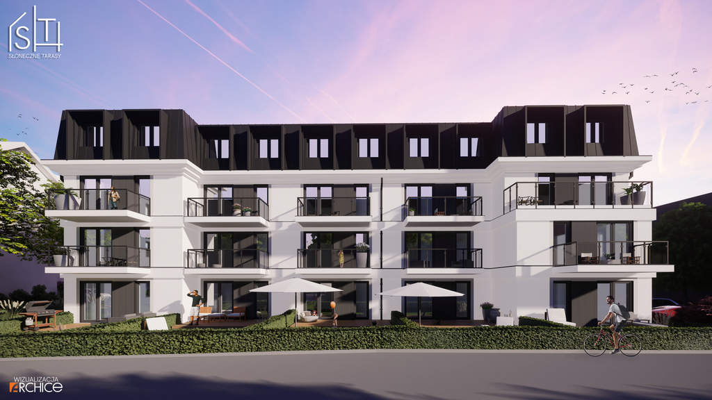 Apartamenty posiadają ogródki, balkony oraz duże tarasy do 32 m2