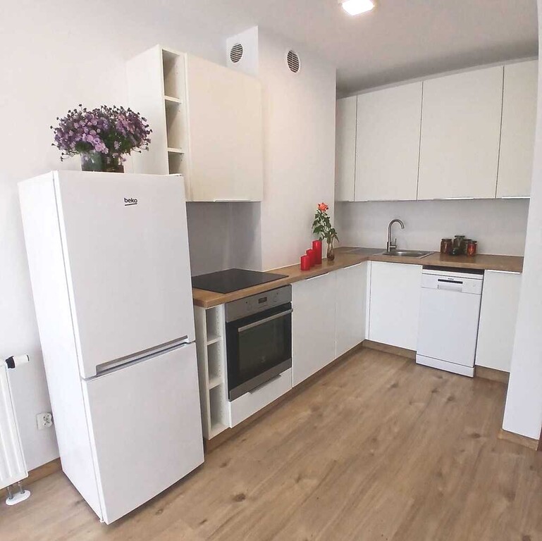 Własnościowe 2-pokojowe mieszkanie przy ul. Popiełuszki Szczecin-Pogodno, na 2-piętrze w budynku 4-piętrowym z windą. Salon z aneksem kuchennym, bardzo widny od strony wschodniej z wyjściem na balkon i widokiem na tereny zielone z dala od ulicy. Mieszkanie świeżo po remoncie wymienione panele i odmalowane. Kuchnia w pełni wyposażona. Łazienka w stanie idealny. W pobliżu szkoła 1 km, przedszkole 650 m, Biedronka 950 m, Żabka 300 m, Międzyosiedlowy park rekreacyjny z wybiegiem dla psów 400 m, apteka 280 m,  przychodnia 300 m. Dobrze skomunikowane z pozostałą częścią miasta. Okolica bardzo spokojna i cicha.  Zapraszam na prezentację, klucze w biurze.