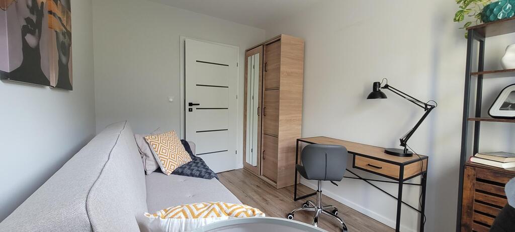 - pokój około 10 m2, z rozkładaną kanapą oraz biurkiem i szafą;