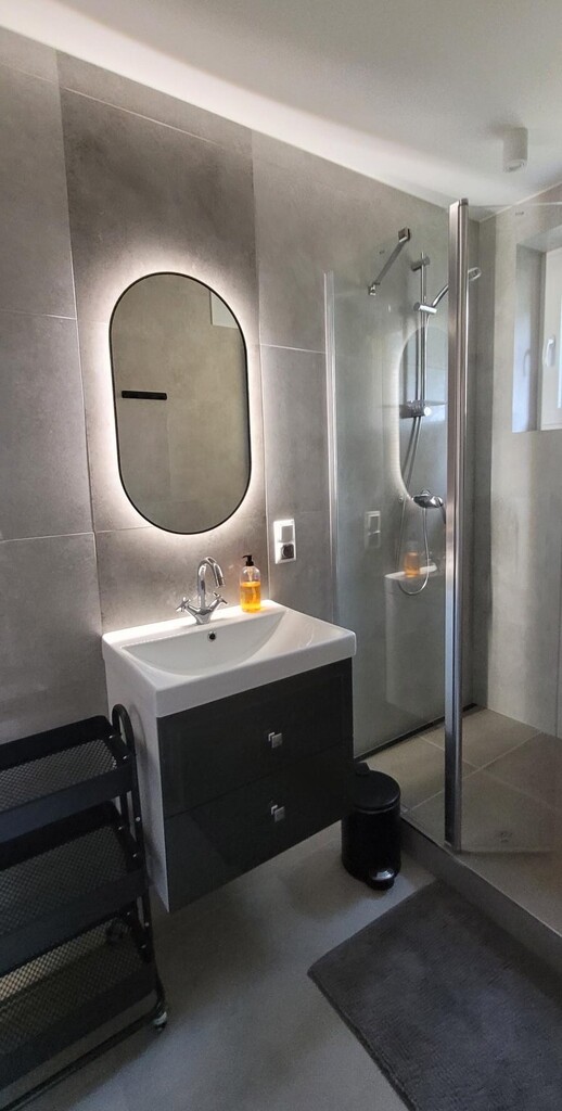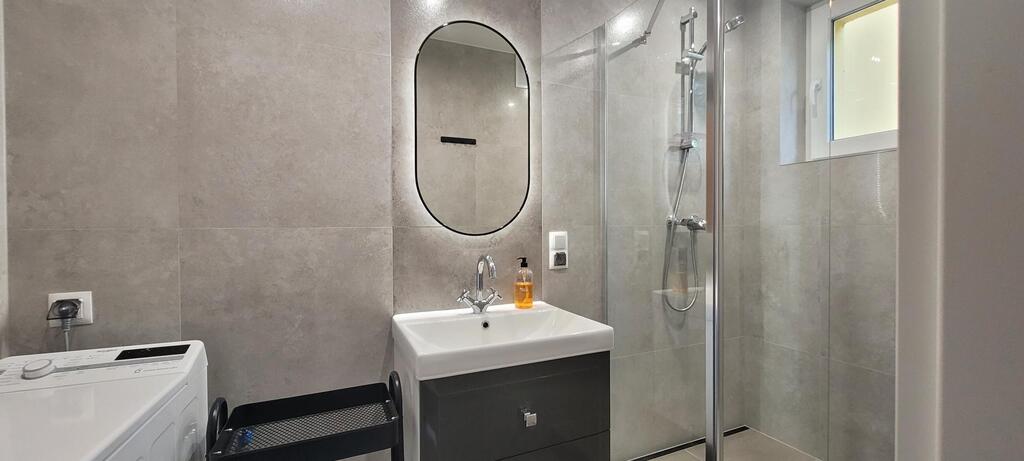 - łazienki z prysznicem oraz umywalką, na wyposażeniu pralka;