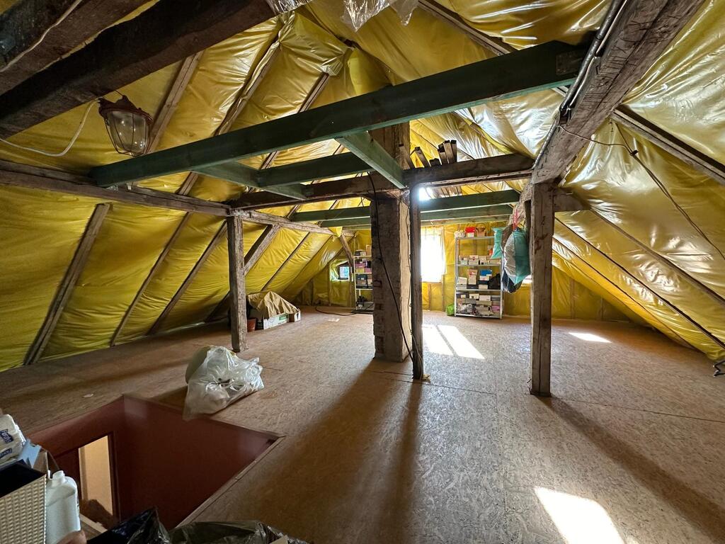 Ocieplony w 2007 roku. Dach pokryty blachą w 2010 roku. Okna PCV.