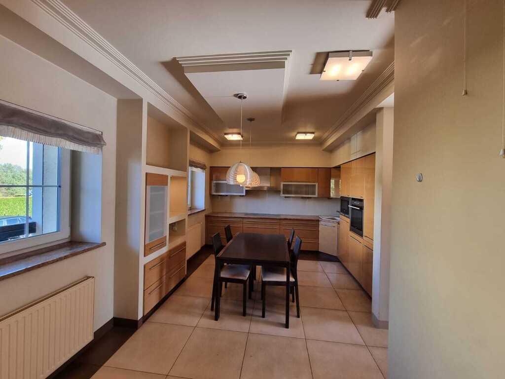 - dużej kuchni wyposażonej w meble w zabudowie,