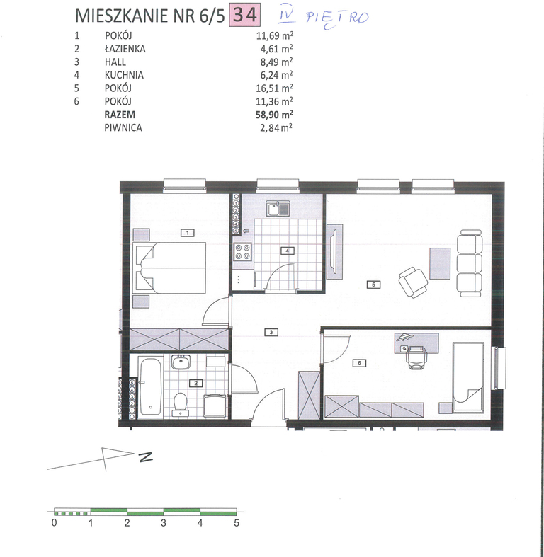 Przedmiotowe mieszkanie znajduje się na CZWARTYM PIĘTRZE. Składa się z pokoju dziennego o powierzchni 16,51mkw, pokoju 11,69mkw, pokoju 11,36mkw, kuchni 6,24mkw łazienki 4,61mkw oraz hallu 8,49mkw. Do mieszkania przynależy piwnica o powierzchni 2,79mkw.