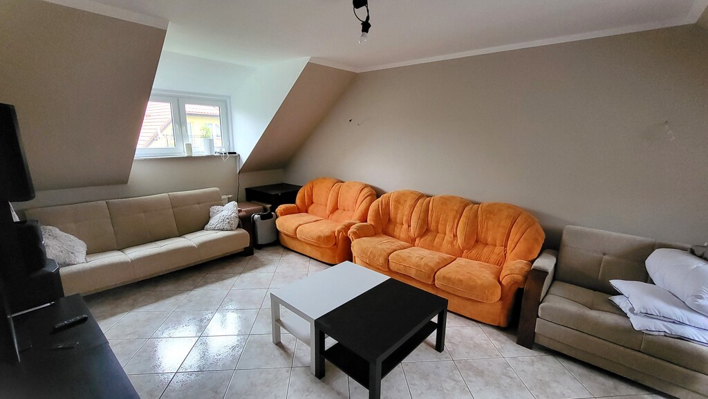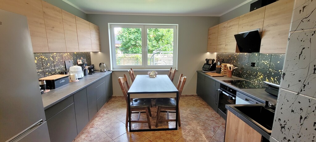 - duuuża kuchnia (21 m2) z nowoczesnymi, prawie nowymi meblami w zabudowie.