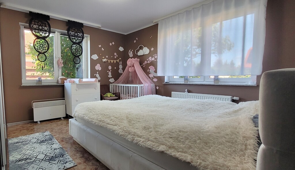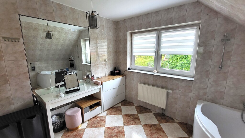 Poleca się do zakupu ładnie urządzony, duży dom w zabudowie bliźniaczej. Bliźniaki stykają się tylko garażami więc jest to niemal dom wolnostojący.