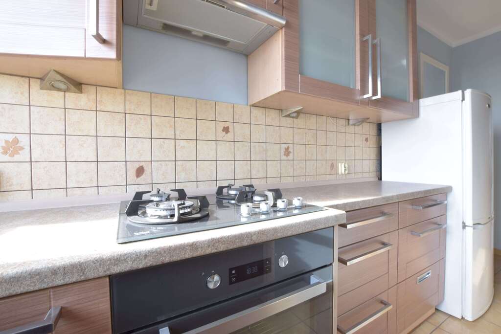 - kuchnia w zabudowie z systemem cichego domykania szafek. Wyposażona w piekarnik, lodówkę, okap, płytę gazową, zmywarkę.