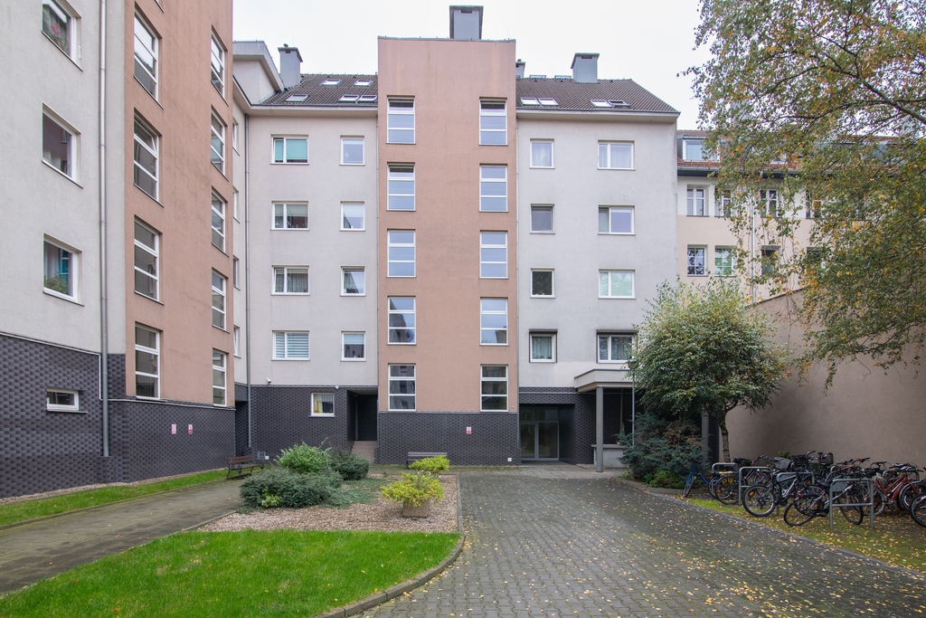 Dostęp do budynku prowadzi przez zamknięte i strzeżone podwórko, na którym można np. trzymać rower. W bloku nie ma barier architektonicznych, wejście jest z poziomu gruntu a na piętra można dojechać windą