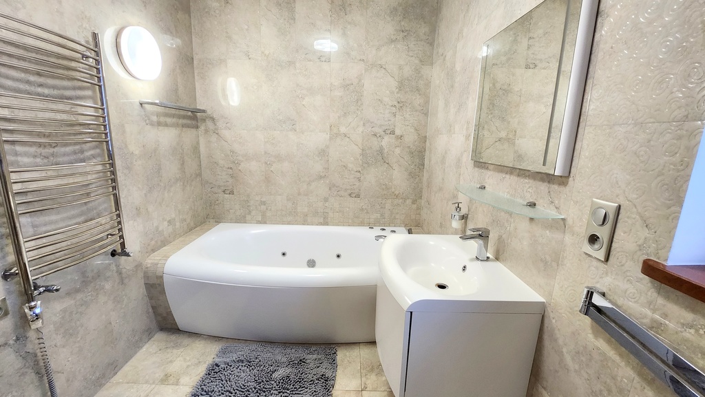 - duża łazienka z wanną wyposażoną w hydromasaż