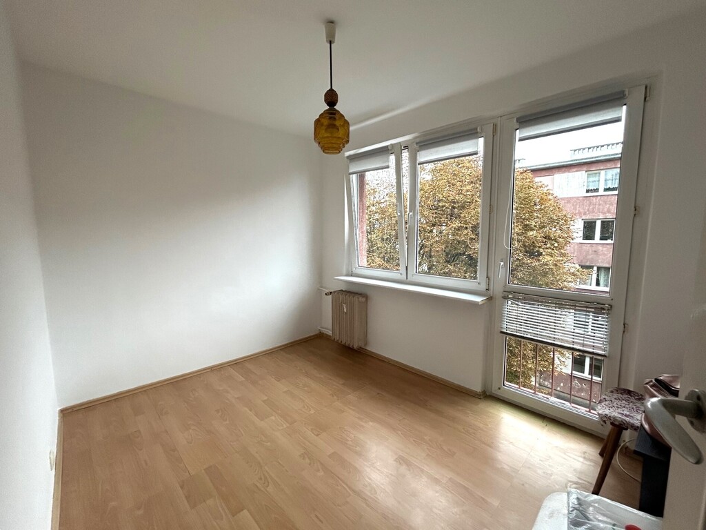 Mieszkanie w pełni rozkładowe, kuchnia z oknem (bez mebli), łazienka z niewielką wanną i toaletą. Oba pokoje z balkonami francuskimi.