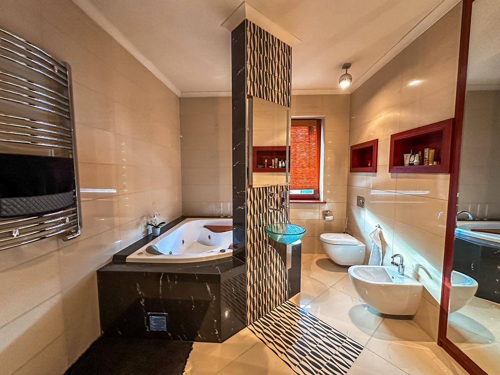 - Salon z łazienką wyposażoną w wannę z hydromasażem Victory Spa Sicilia.