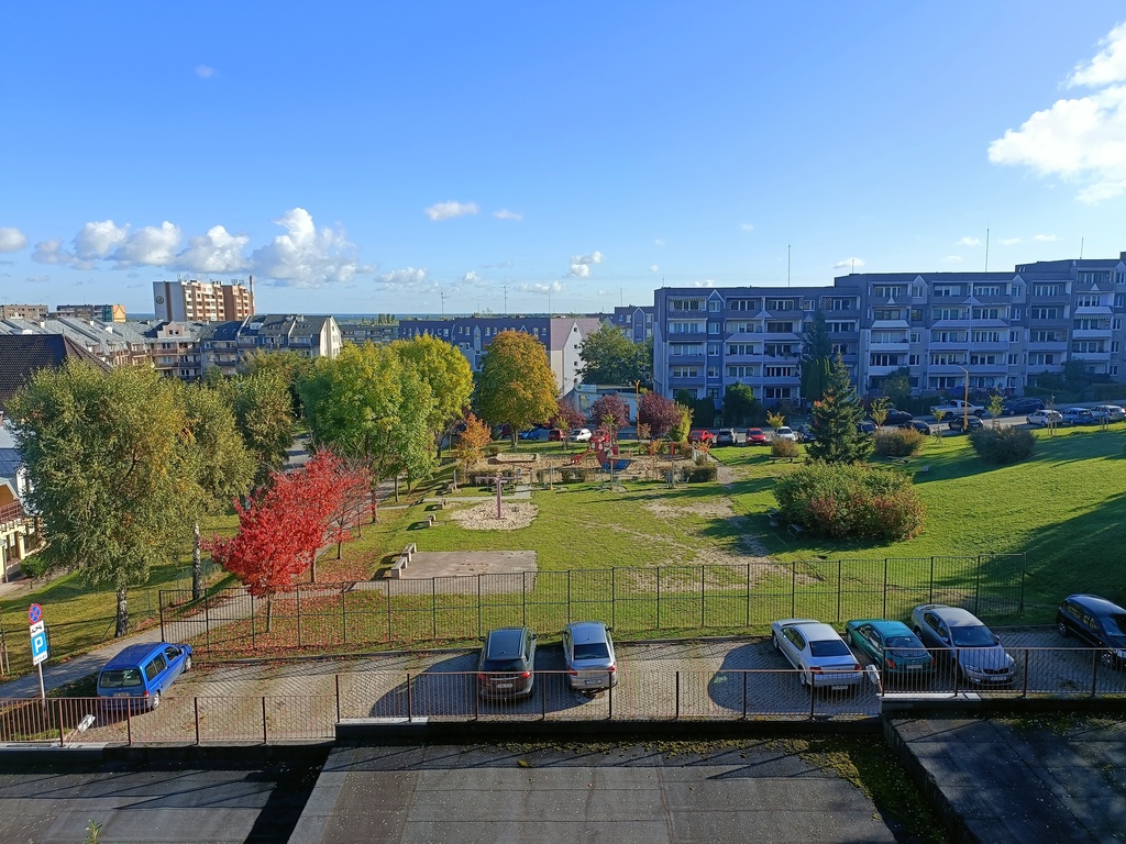 Na podwórku jest dużo miejsc parkingowych oraz tereny zielone.