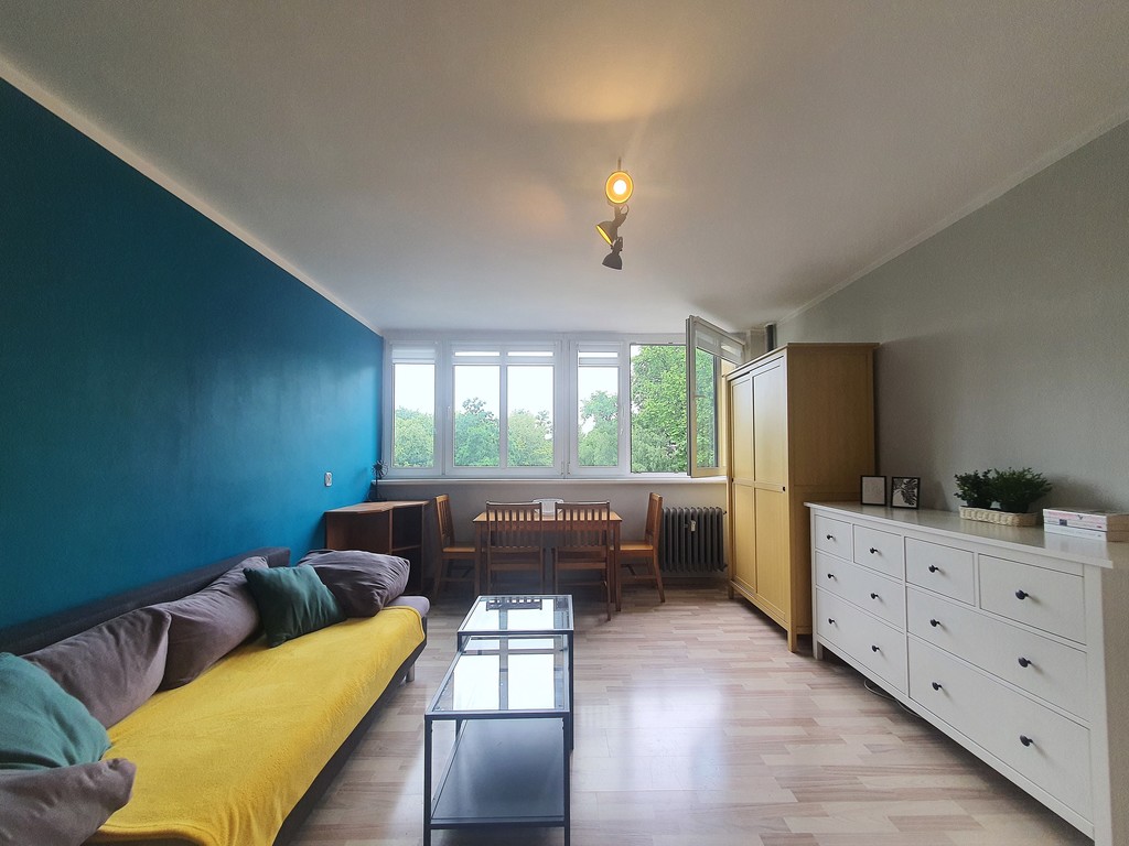 - Lokalizacja bardzo dogodna (100m od Galaxy), ale okna wychodzą na małą uliczkę z przyległym placem zabaw, dzięki czemu nie dokucza nam hałas.
