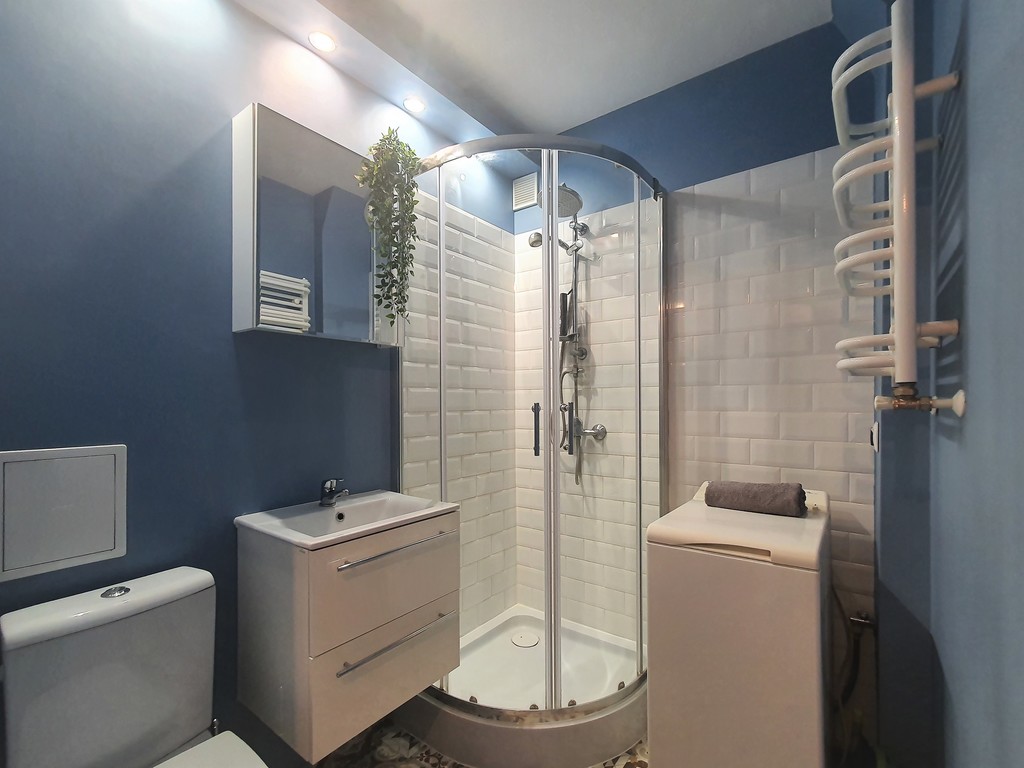 - łazienki z wc i kabiną prysznicową, umywalką i pralką,