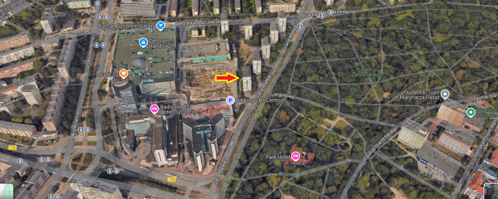 Mieszkanie znajduje się w ścisłym centrum Szczecina tuż obok hotelu Radisson i CH Galaxy. W najbliższej okolicy znajdują się sklepy, banki, szkoły i przedszkola, centrum fitness, restauracje, punkty usługowe i wiele innych. Doskonale skomunikowane – w okolicy znajdziemy liczne linie tramwajowe i autobusowe. Idealne miejsce dla osób szukających mieszkania w centrum.