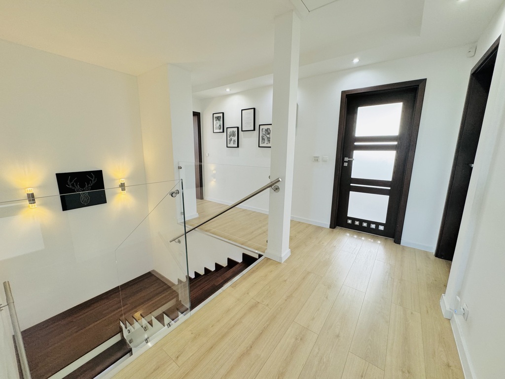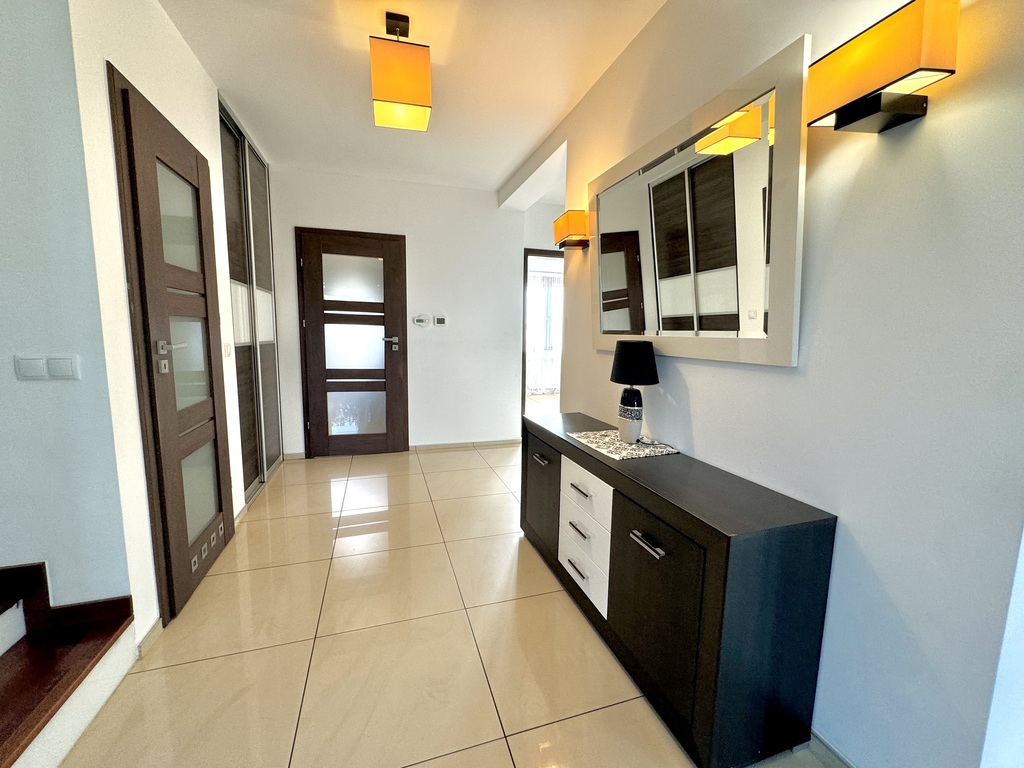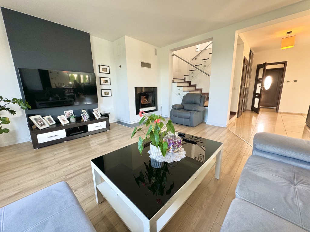 Na sprzedaż dom jednorodzinny, piętrowy o pow. użytkowej 195 m2 ( powierzchni całkowitej ok. 260 m2) wybudowany w 2010 r. Nieruchomość posadowiona na ogrodzonej działce o pow. 1157 m2 w pełni zagospodarowanej w nasadzenia.