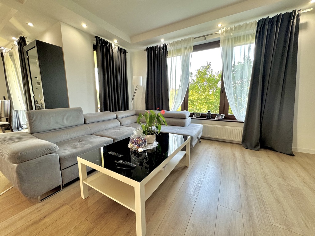 - salon (ok. 25 m2) z wyjściem na taras ok 30 m2,