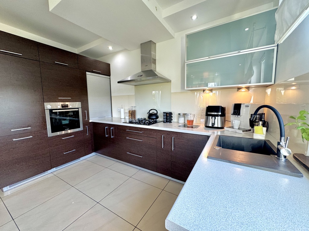 - kuchnia otwarta na salon (ok. 20 m2) w zabudowie meblowej i sprzęt AGD,
