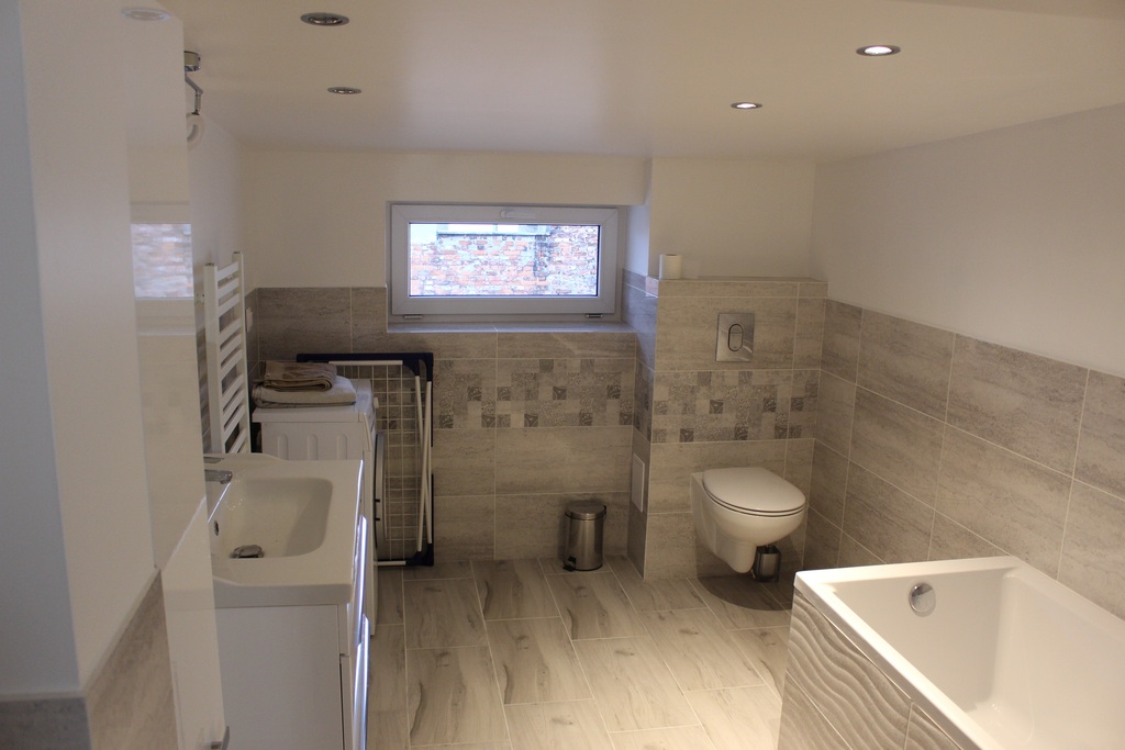 Łazienka z wanną, po generalnym remoncie.