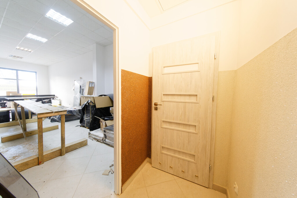 OPIS LOKALU: Lokal wykończony w wysokim standardzie, z podłogą w terakocie, gładkimi, malowanymi ścianami, podwieszanym sufitem i drewnianą stolarką okienną. Duża powierzchnia okien witrynowych i wejście od frontu sprawiają, że lokal jest dobrze widoczny i atrakcyjny dla klientów.