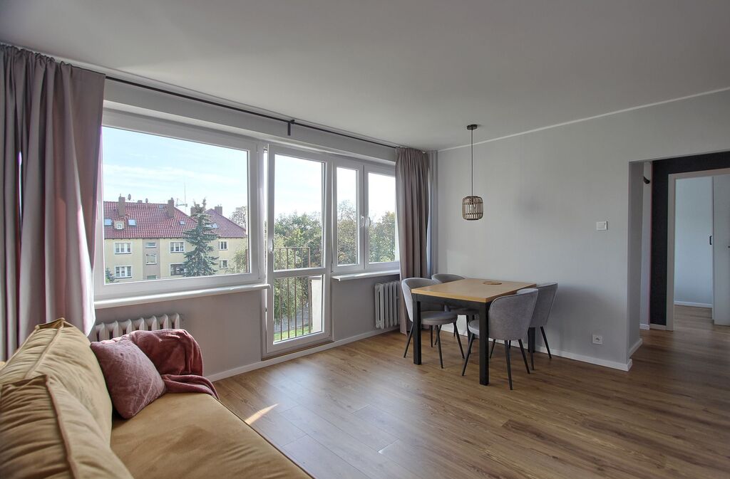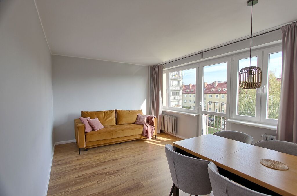 Funkcjonalne, 2-pokojowe mieszkanie w sercu Niebuszewa w spokojnej części dzielnicy, w sąsiedztwie dwóch szkół podstawowych z basenem w odległości 200m oraz dwóch mniejszych słonecznych parków rodzinnych z nowo wybudowanymi placami zabaw.