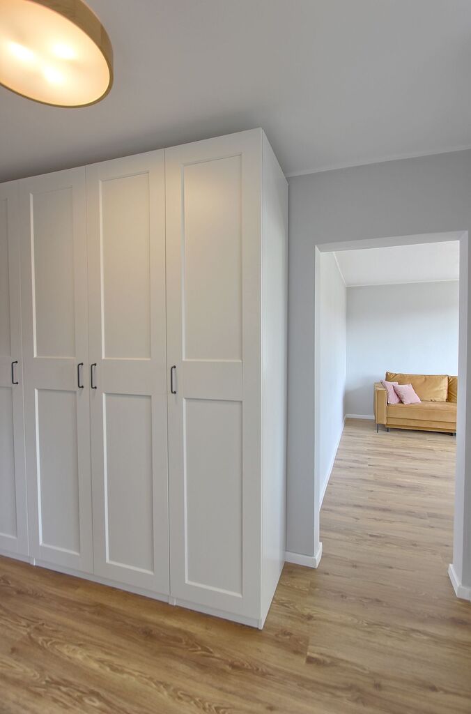 W sypialni i przedpokoju zaprojektowano 2 duże szafy ze sporą ilością miejsca do przechowywania.