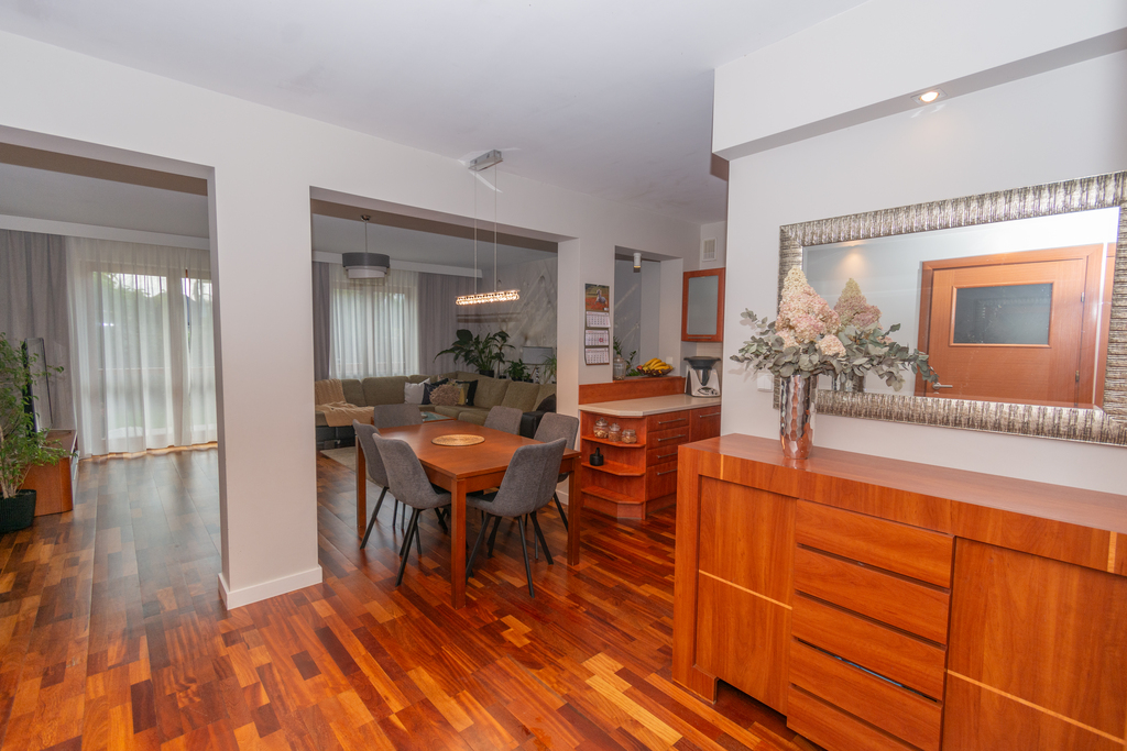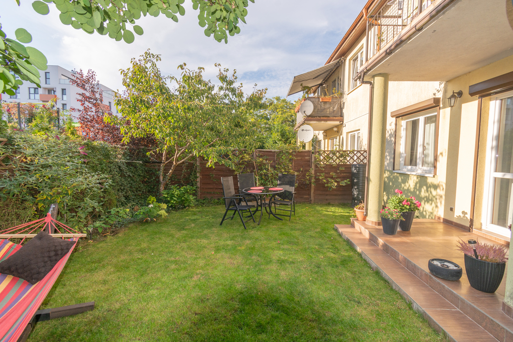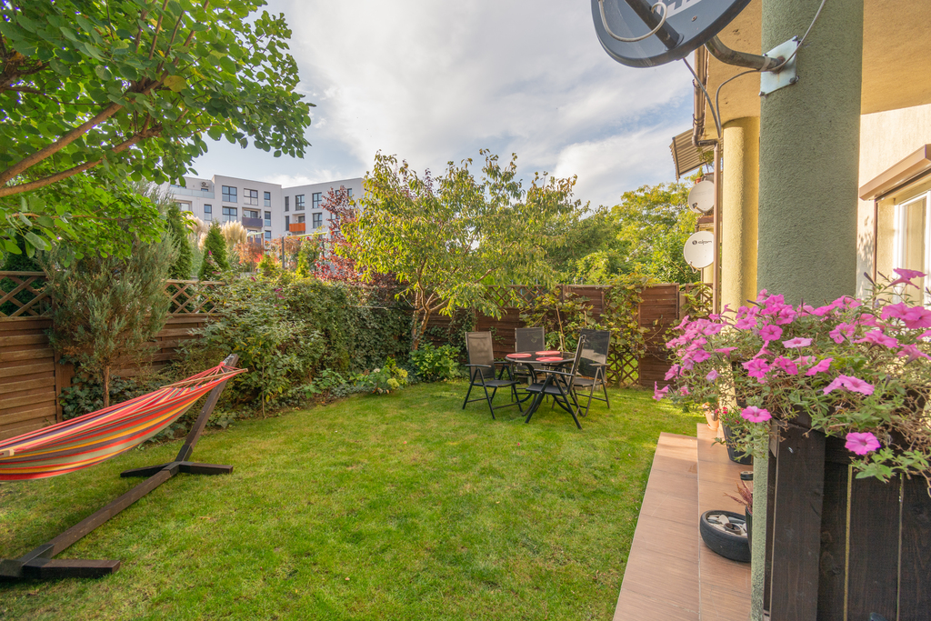 Mieszkanie 4 pokojowe o powierzchni 92,2 m2 położone na parterze budynku w zabudowie szeregowej z 2006 roku, posiada ogród o powierzchni 80m2, 2 miejsca postojowe położone przy wejściu do lokalu.