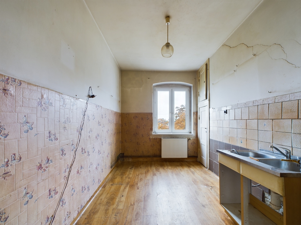 Na sprzedaż 3 pokojowe mieszkanie do kapitalnego remontu położone na 4 piętrze zadbanej kamienicy.