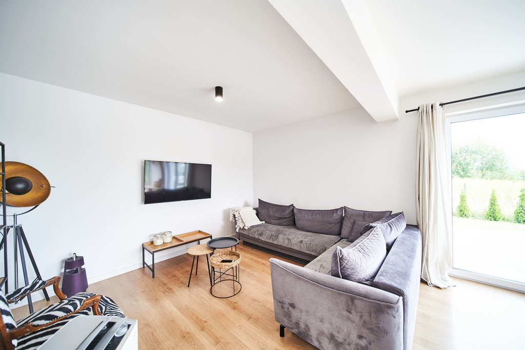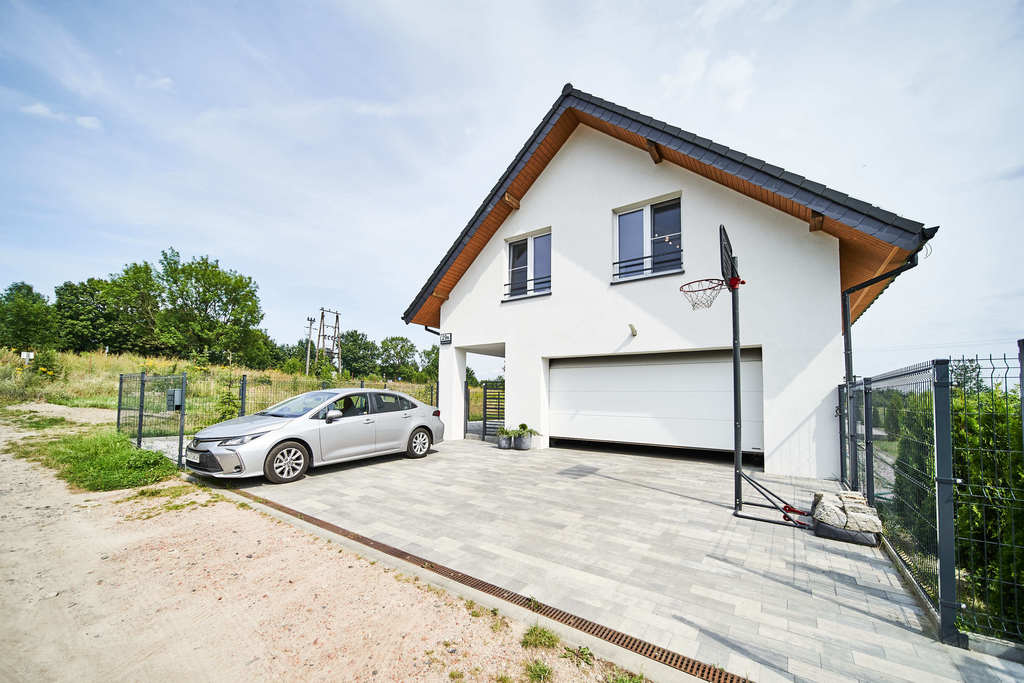 Garaż wyposażony w bramę garażowa na pilota. Możliwość ładowania auta elektrycznego w garażu.